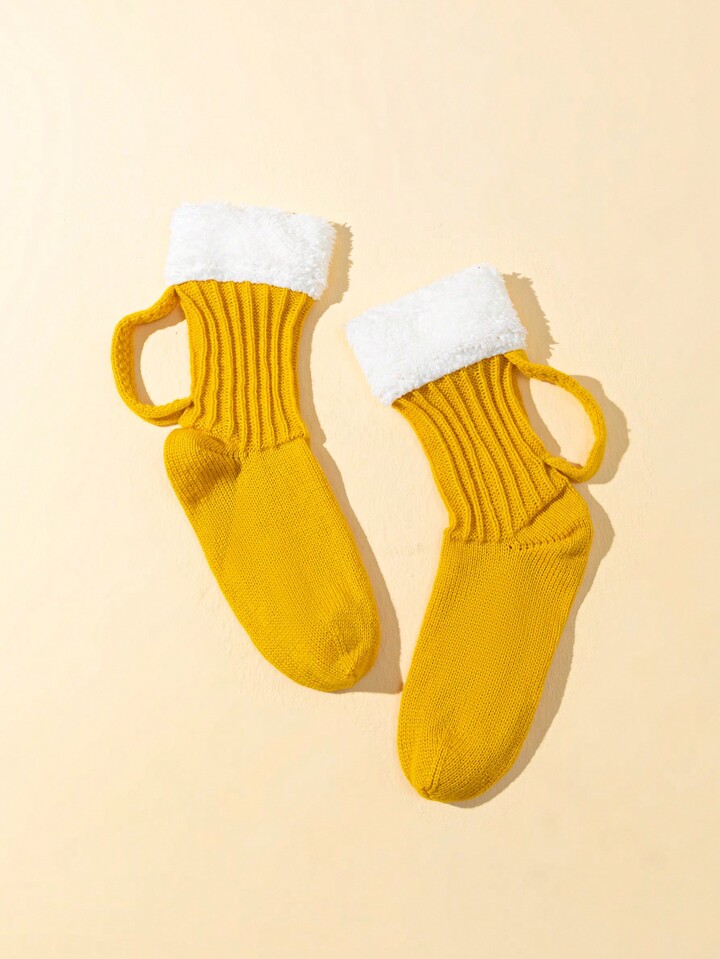 Kawaii Calze termiche invernali di media lunghezza di colore giallo per donne