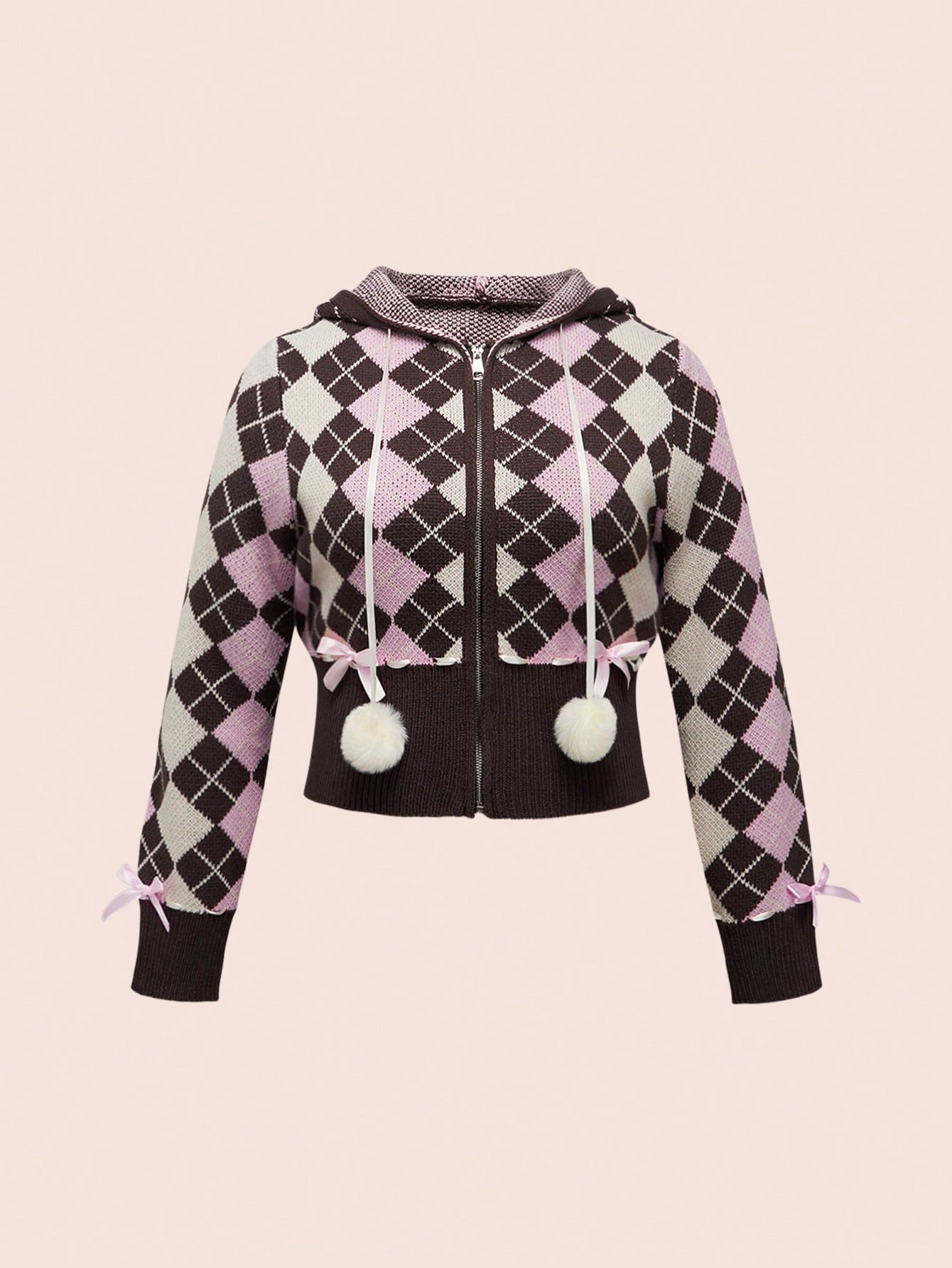 Kawaii Cardigan stile scolastico casual Y2K Himekaji Millennium a vita bassa con motivo a diamanti, per donne taglie comode