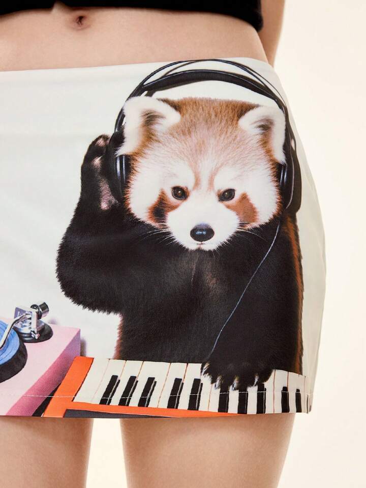 Kawaii Minigonna a vita bassissima con grafica di procione in stile Y2K per donna