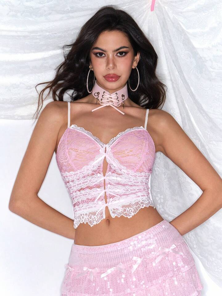 Kawaii Top da donna canotta con scollo a V in pizzo trasparente, regalo sensuale per San Valentino in stile Y2K