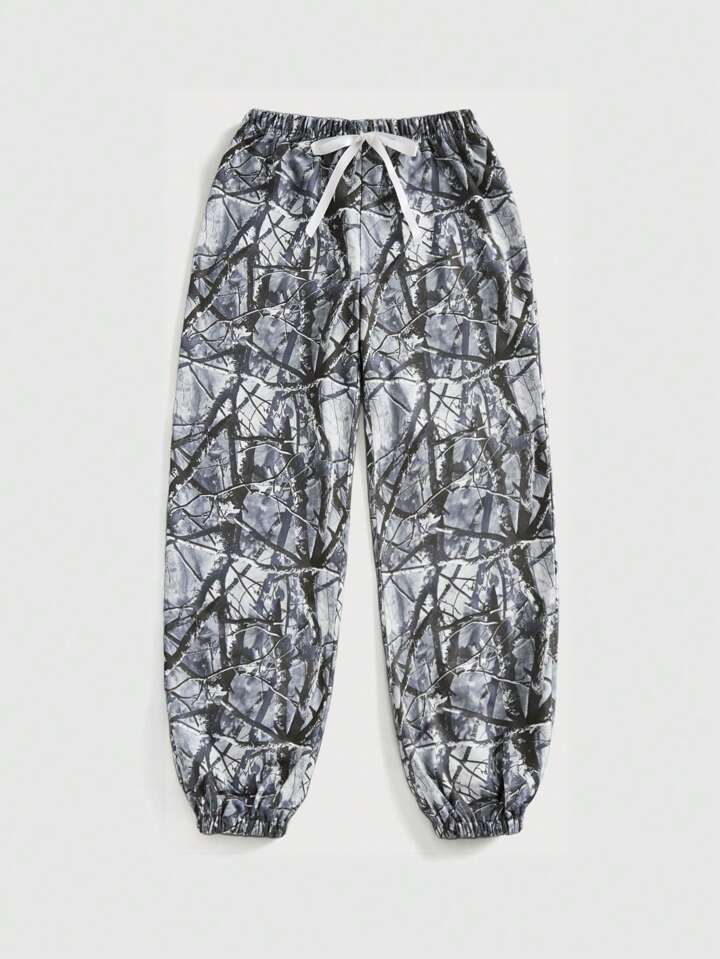 Kawaii Pantaloni della tuta stile strada Y2K da donna, in stampa mimetica larga con fiocco in vita
