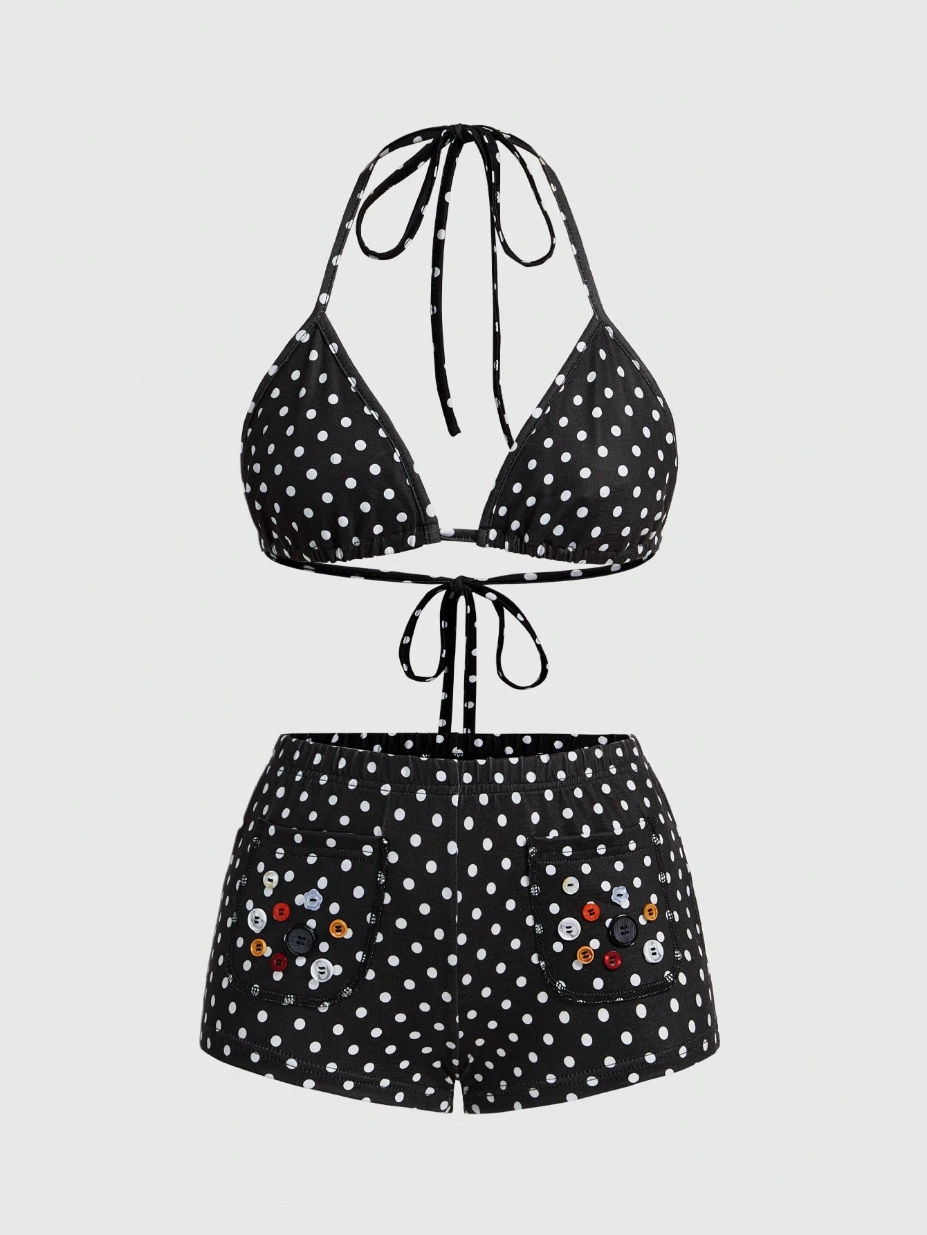 Kawaii Set da 2 pezzi in stile Y2K composto da top corto con laccetti al collo e pantaloncini ultra vita bassa per donne