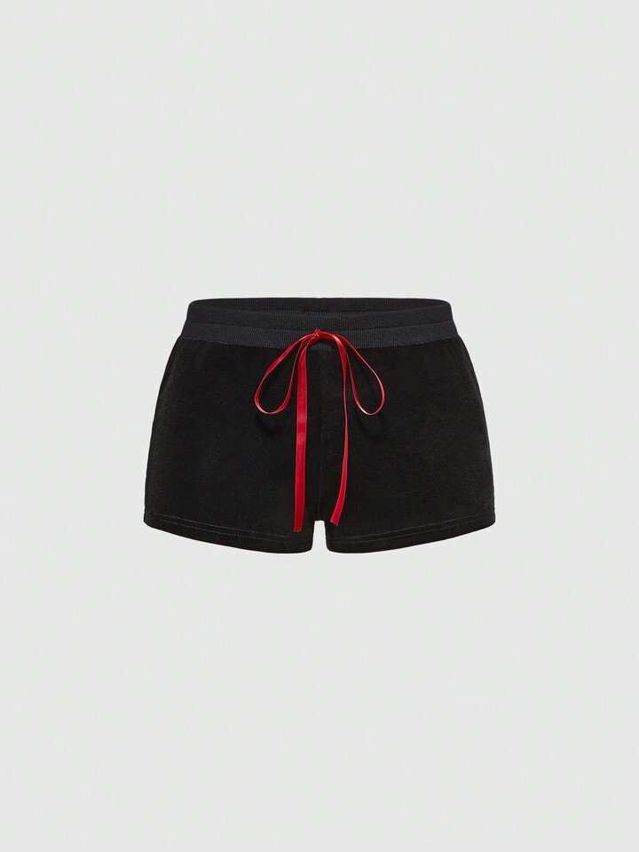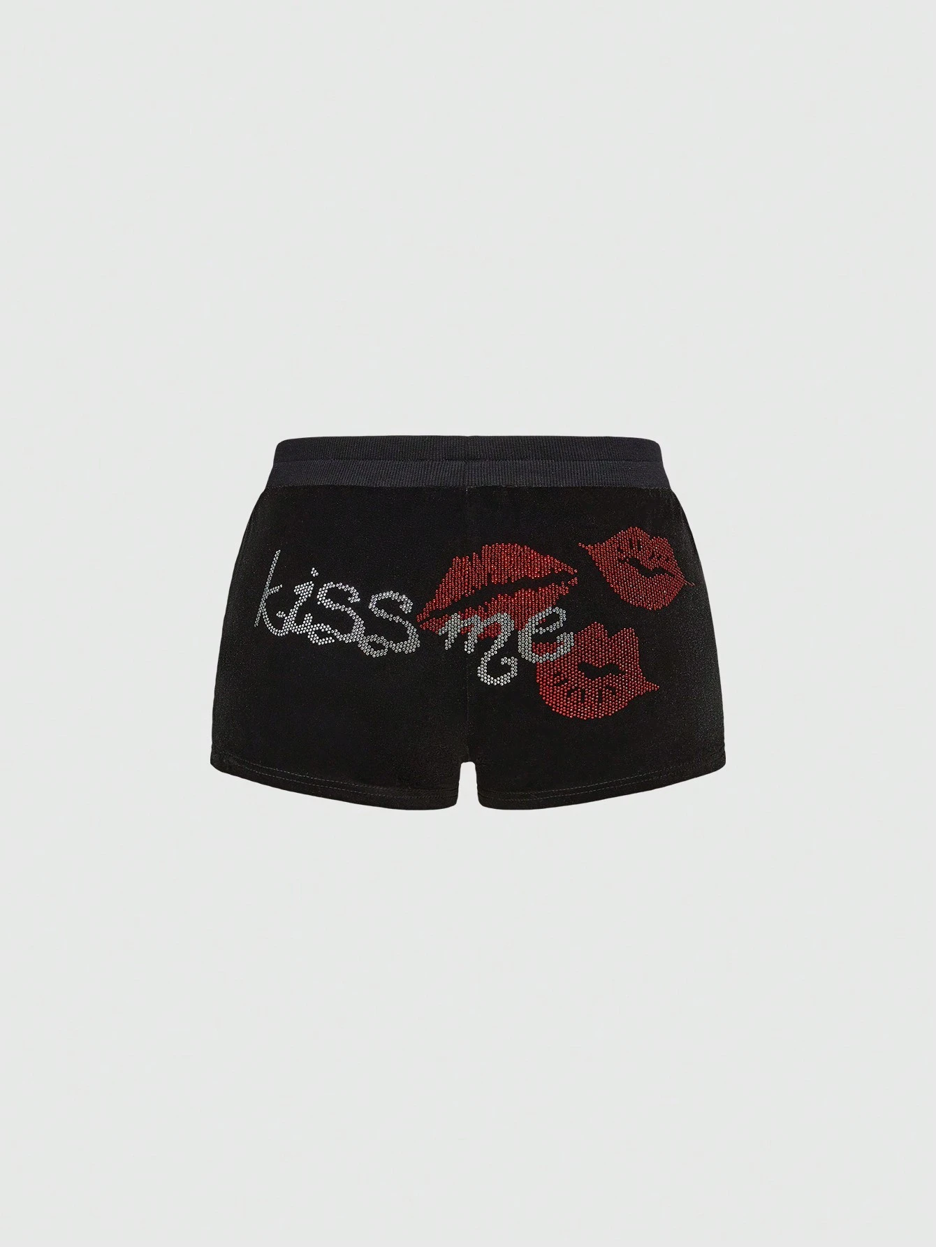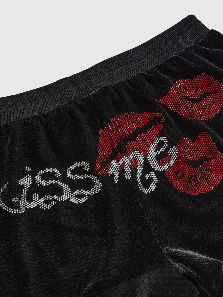 Kawaii Pantaloncini in velluto a vita bassa con stampa a labbra, in stile Y2K, adatti per San Valentino