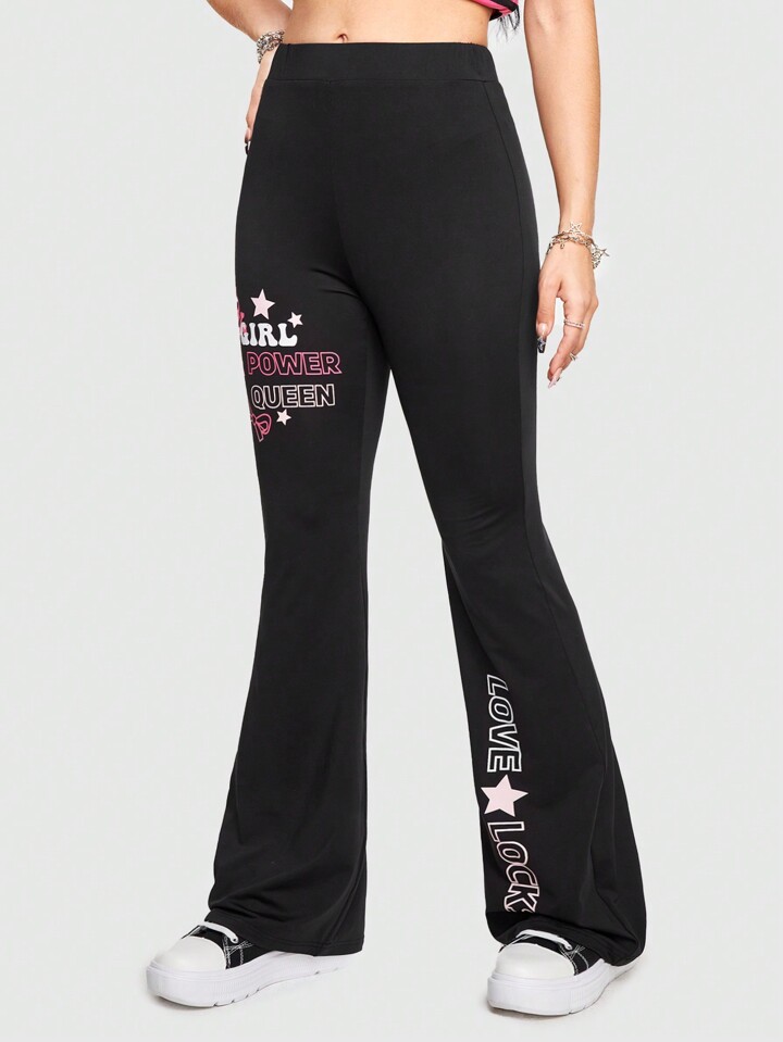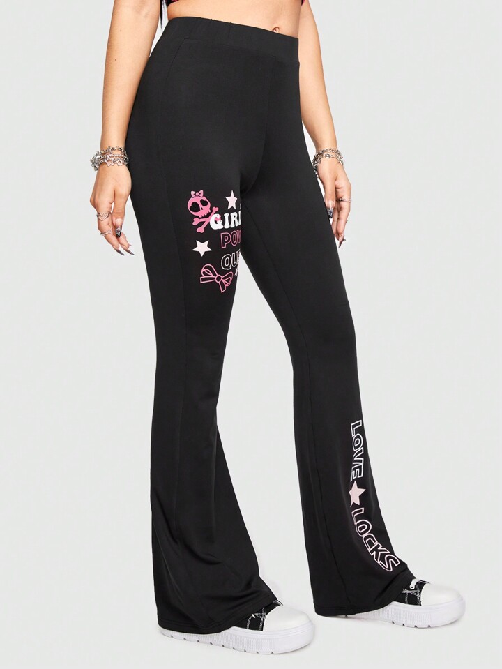 Kawaii Pantaloni Comodi Svasati Con Motivo Alfabeto E Teschio Da Donna Sexy Y2k