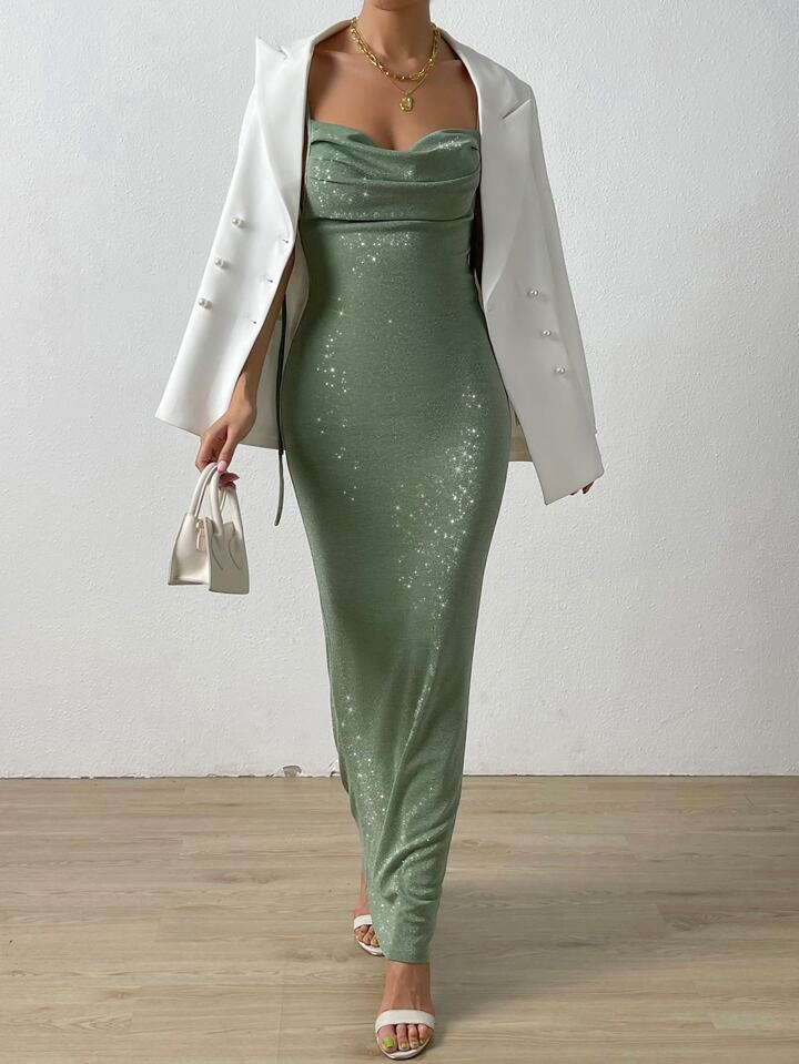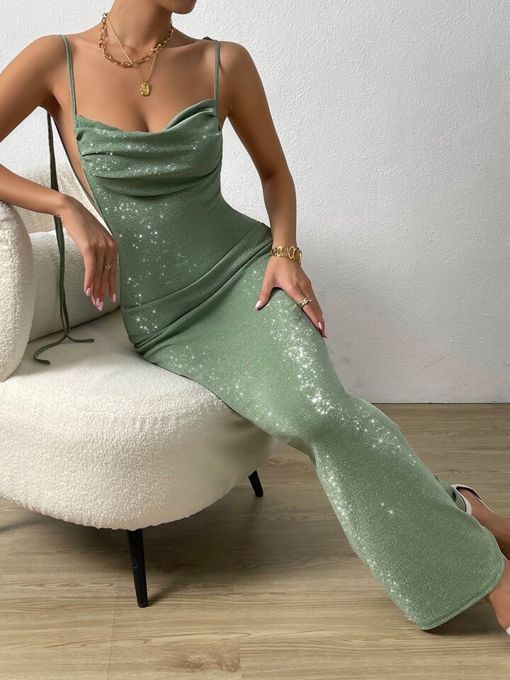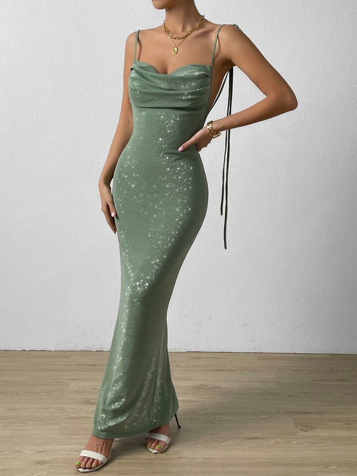 Abito formale spalla annodata con schiena scoperta con orlo a sirena