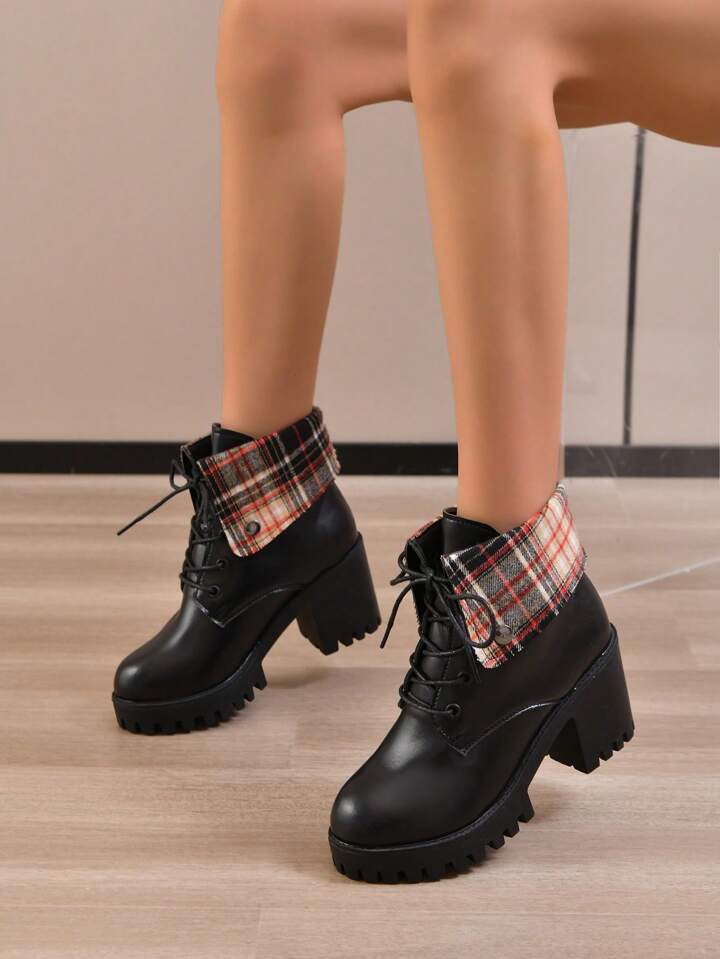 Stivali con lacci stile coreano alla moda stile Ins, con suola spessa e platform impermeabile per donne, per l'ufficio e uso quotidiano, taglie grandi