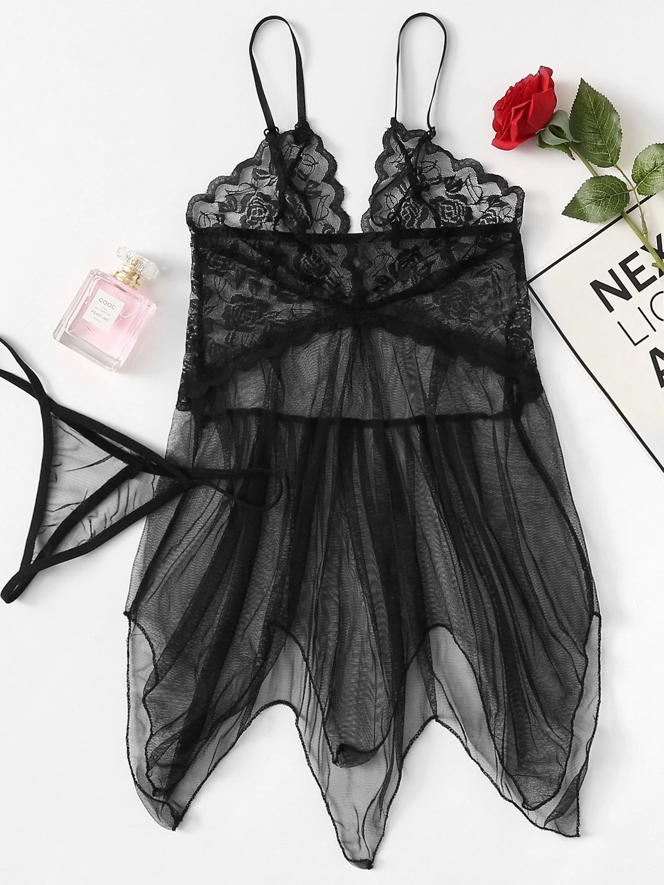 Slips in pizzo e maglie con perizoma