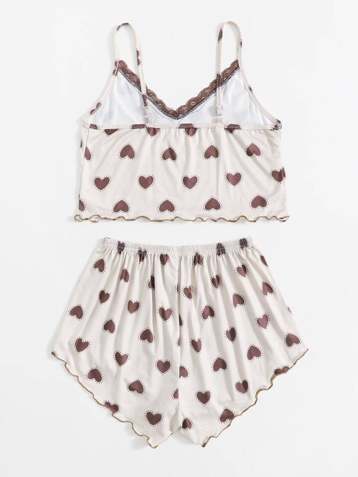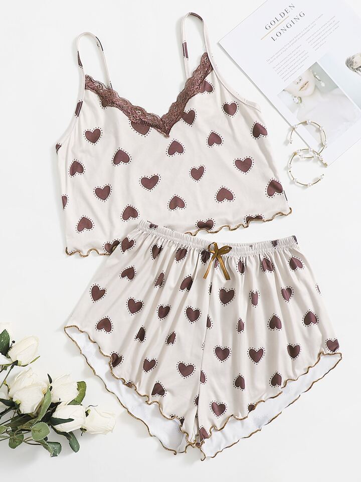 Set pigiama con stampa a cuore e pannello in pizzo