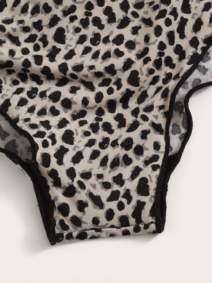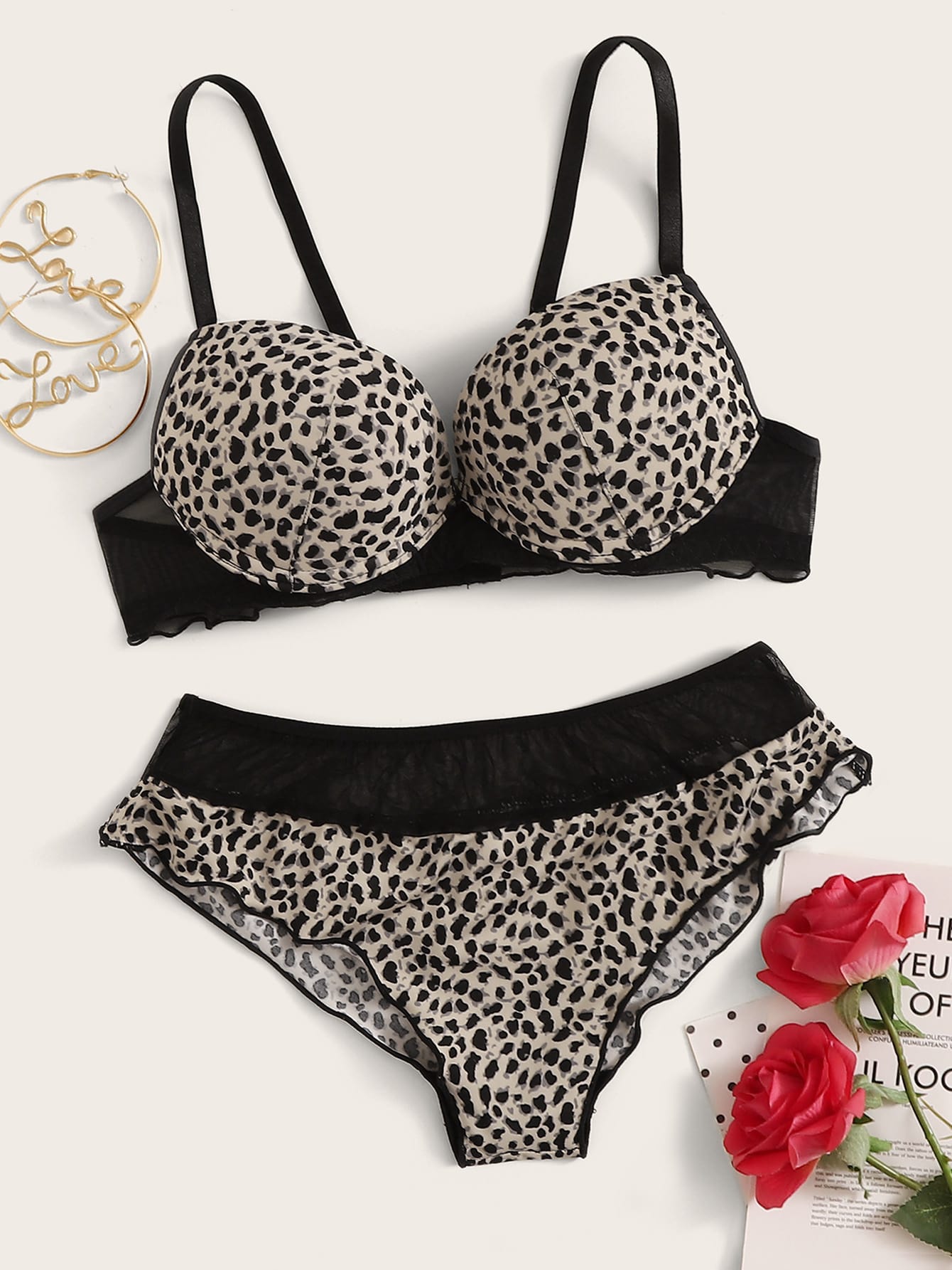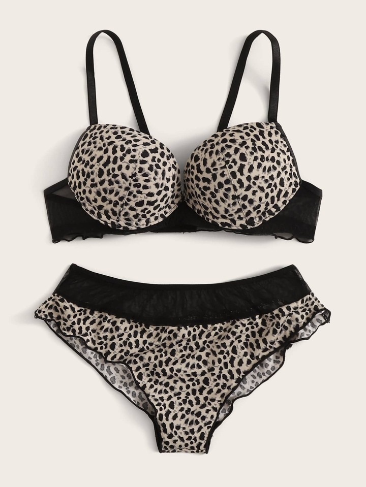 Set lingerie con ferretto e volant con stampa leopardo