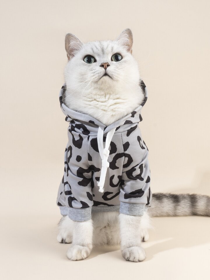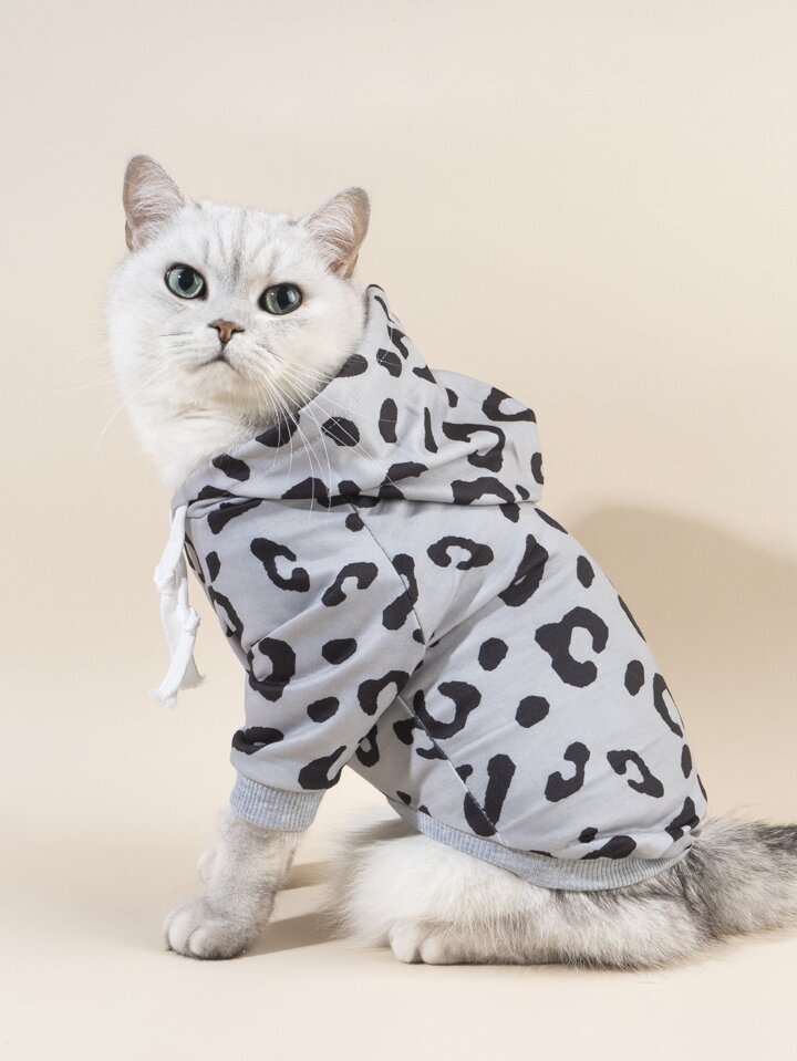 Felpa con cappuccio per animali domestici con stampa leopardo