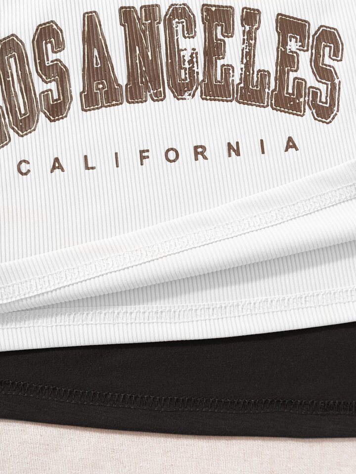 con grafica lettera Top con bretelle sottile & Maglietta asimmetrica