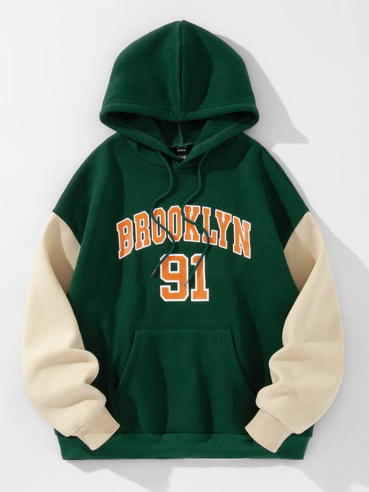 Felpa termica con cappuccio con grafica lettera color block con tasca a marsupio con coulisse