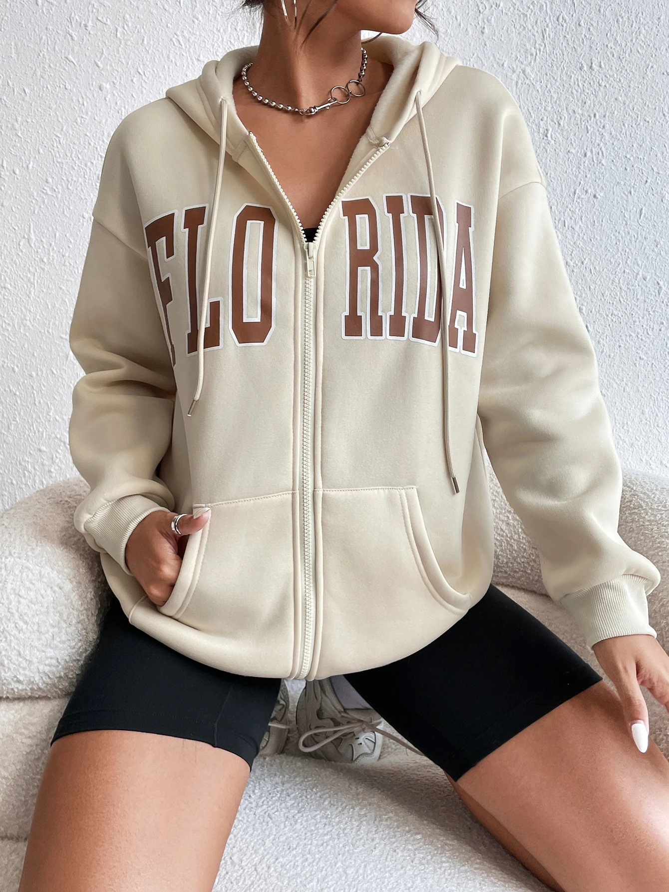 Felpa con cappuccio con grafica lettera con zip foderato termico con coulisse