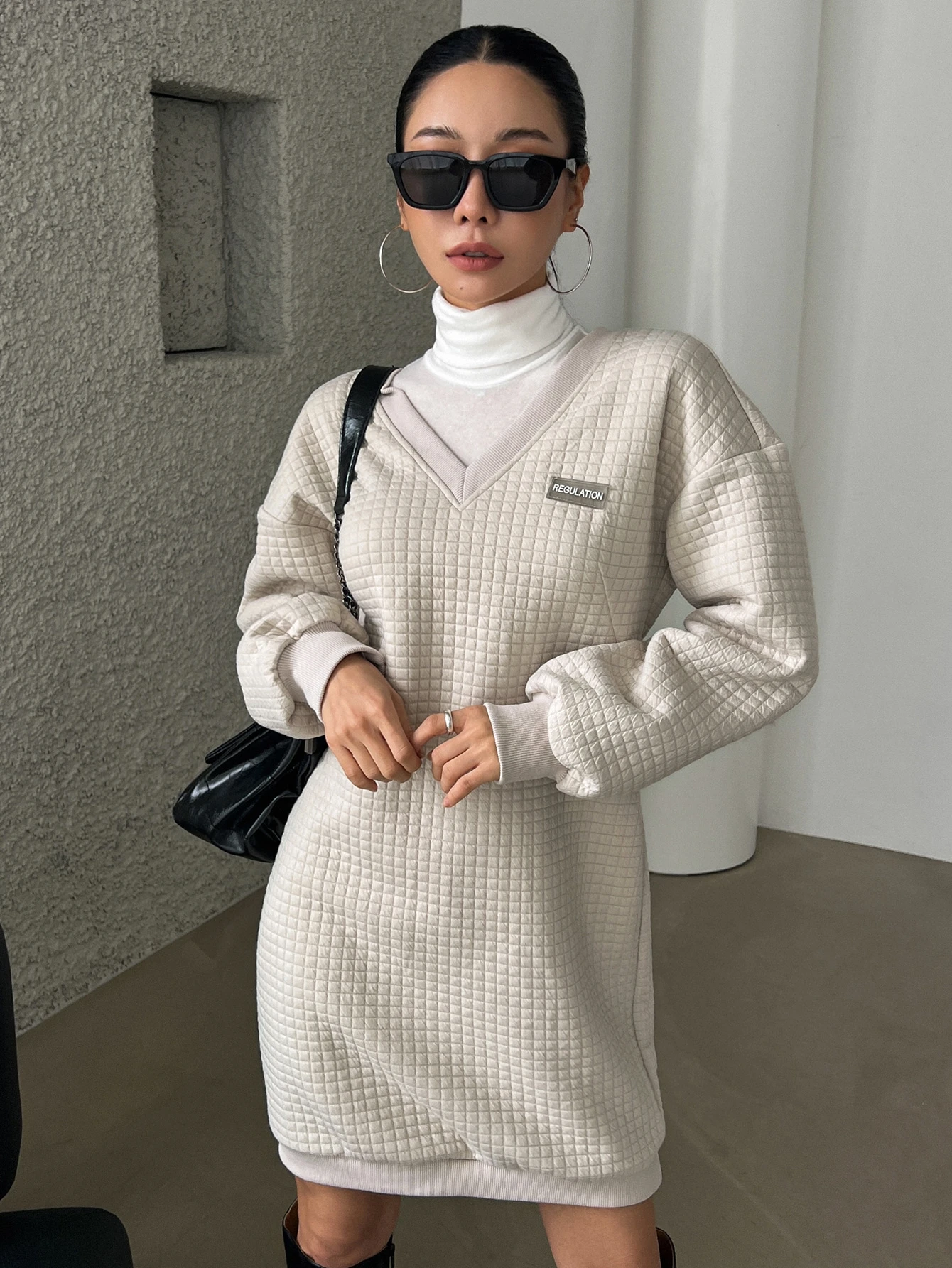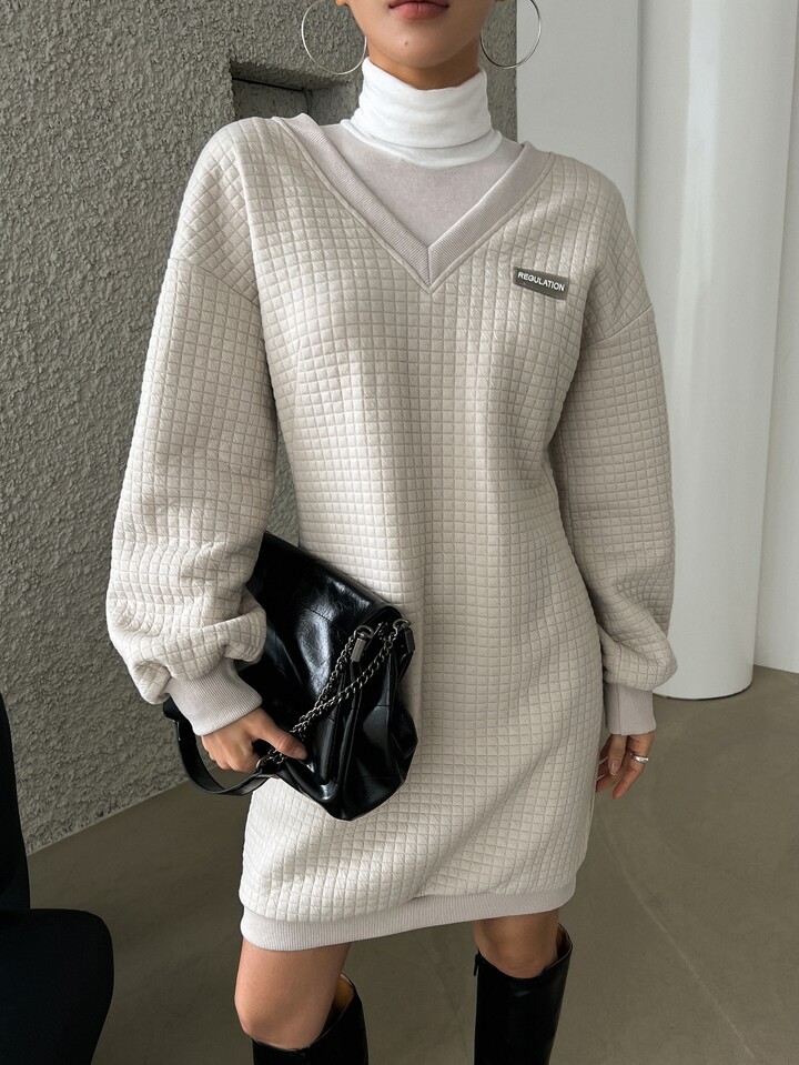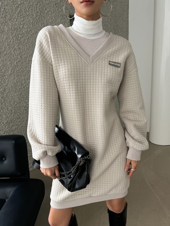 Abito felpa toppa con lettera spalle cadenti senza maglietta