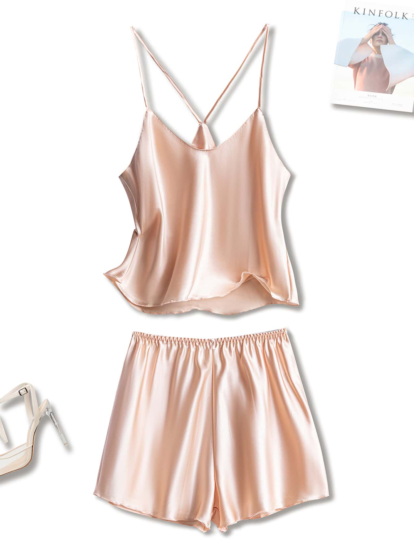 Set pigiama pantaloncini e canotta orlo lattuga monocolore