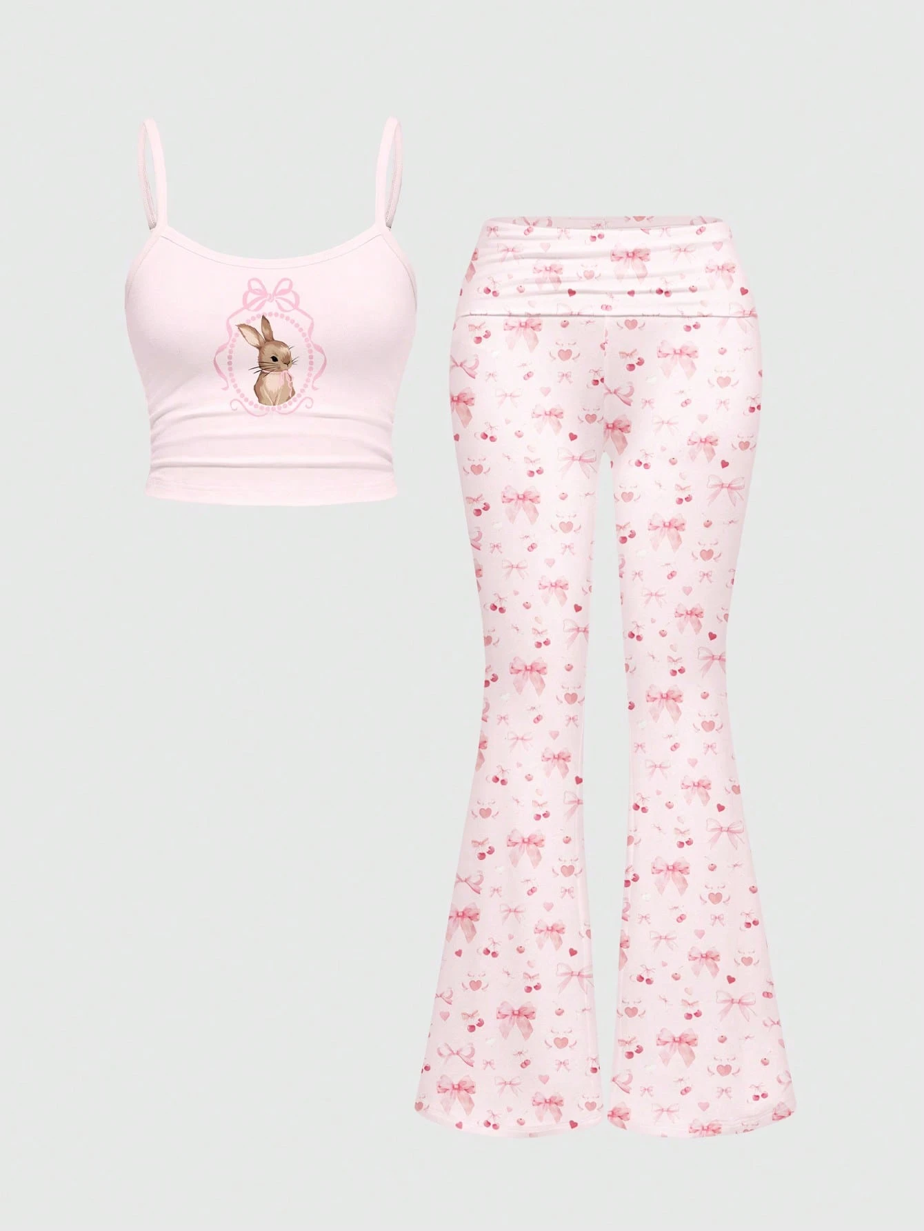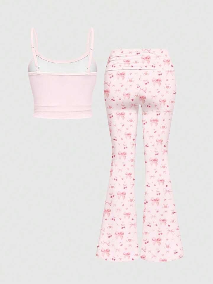 [Lingerie] Canotta sexy con spalline, pantaloni a vita bassa e a zampa d'elefante, set da donna a 2 pezzi