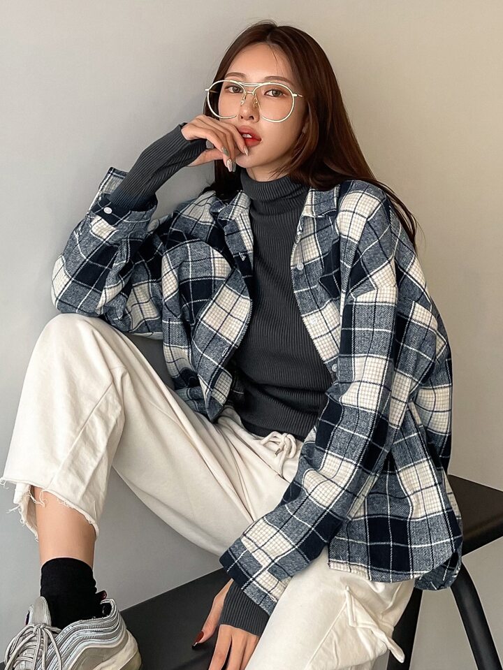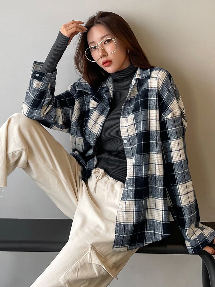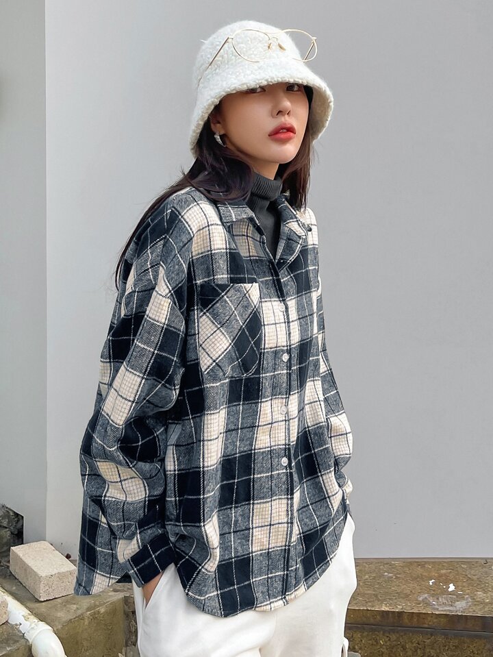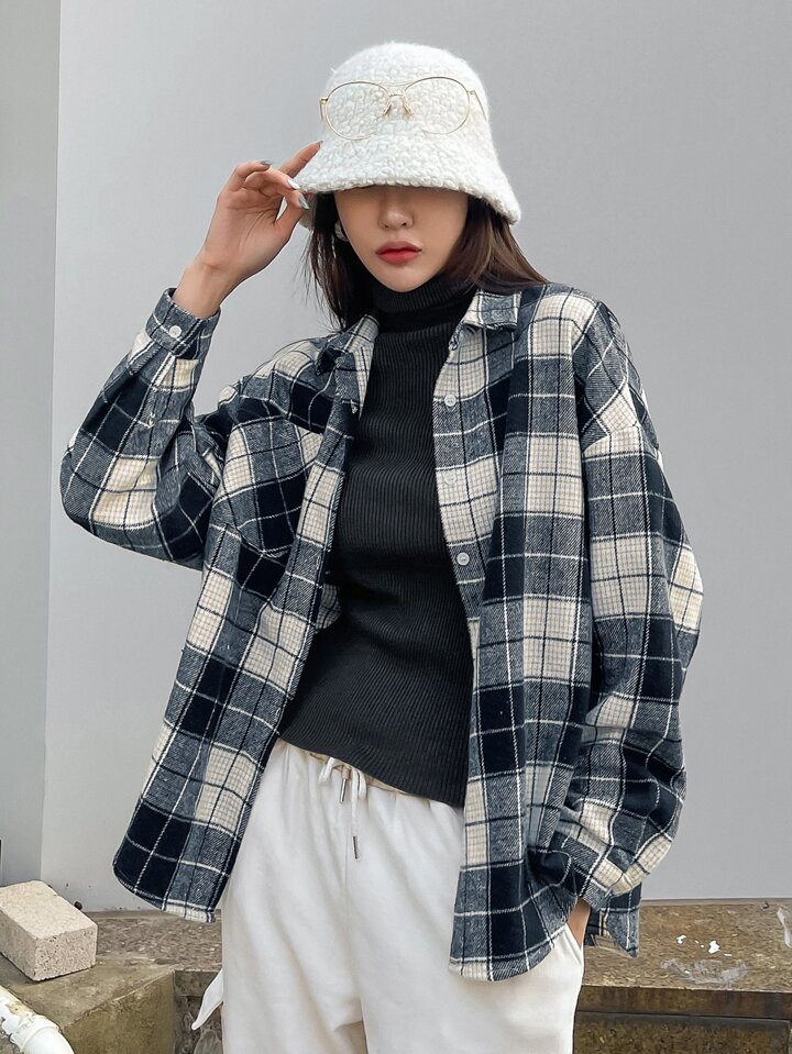 Cardigan casual ampio e morbido, giacca con maniche lunghe, camicia autunnale a quadri