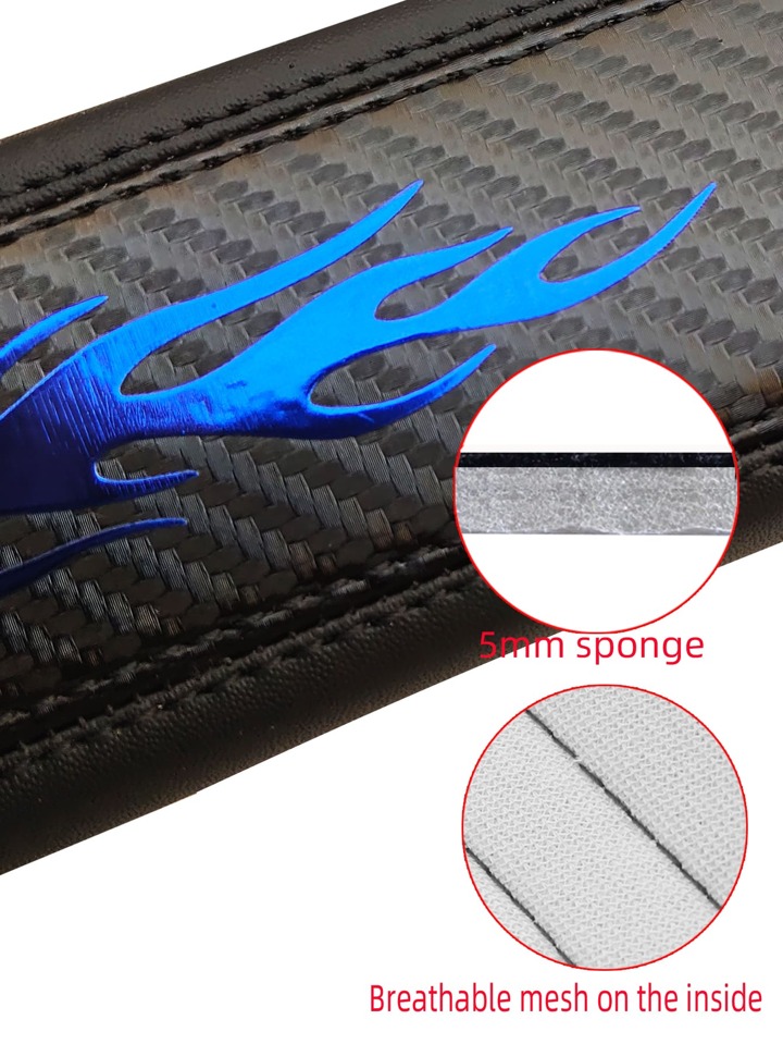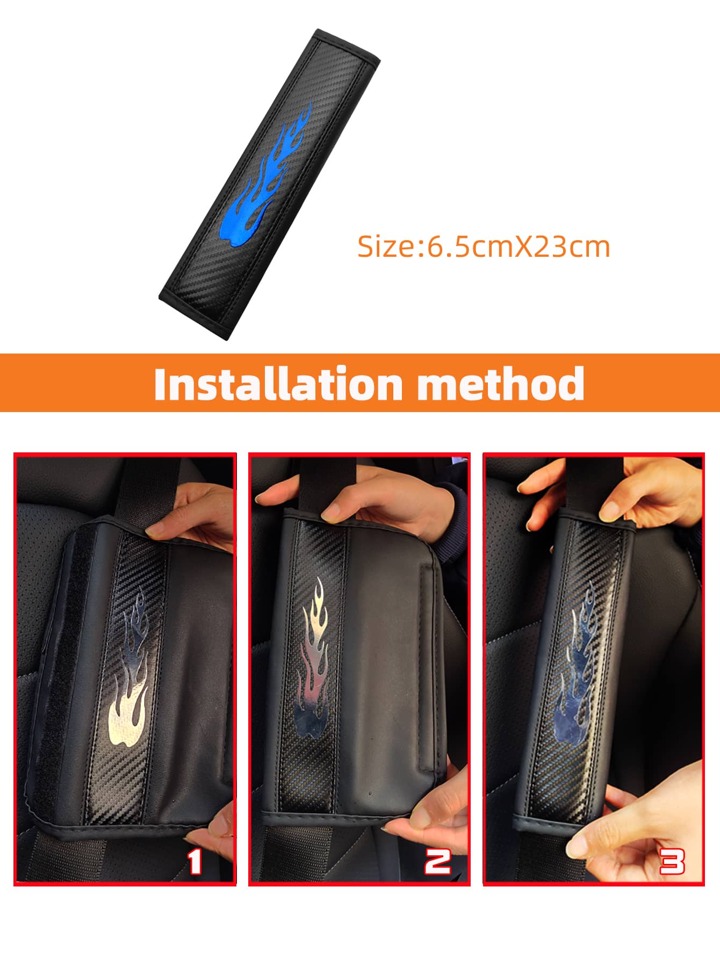 MEIKAXIU 1 pezzo Copricintura di sicurezza auto in pelle e fibra di carbonio con motivo a fiamma, accessorio universale per interni auto