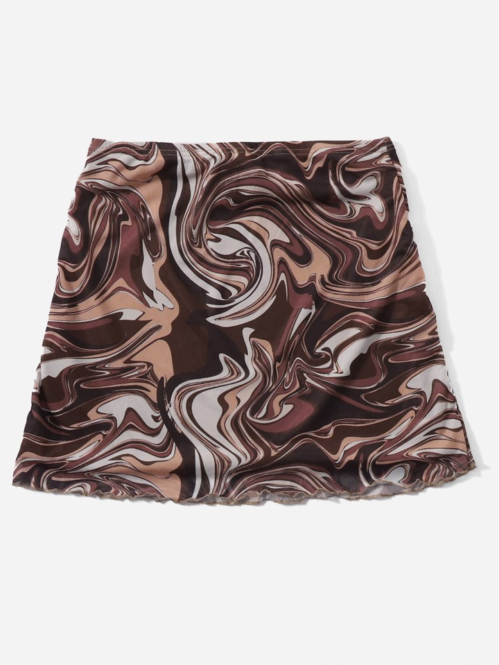 Gonne con stampa marmo orlo lattuga
