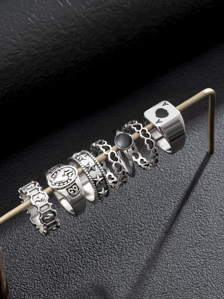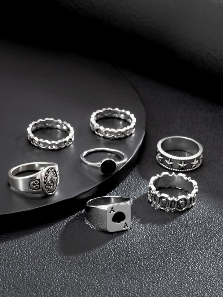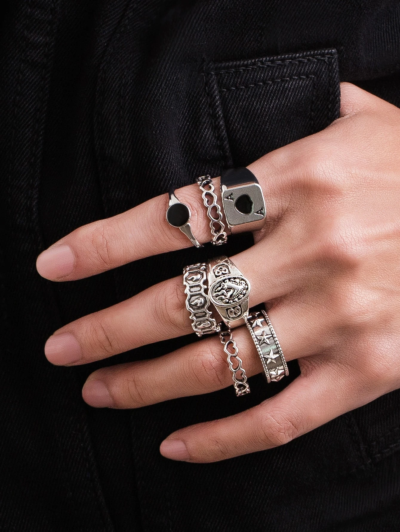 Uomo - Anelli A Forma Di Cuore E Stella (7 Pezzi)