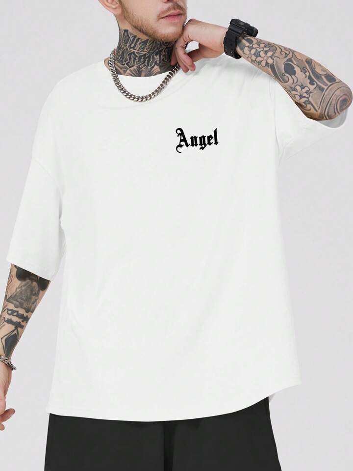 T-shirt grafica con lettera per uomo per Ognissanti, scuola