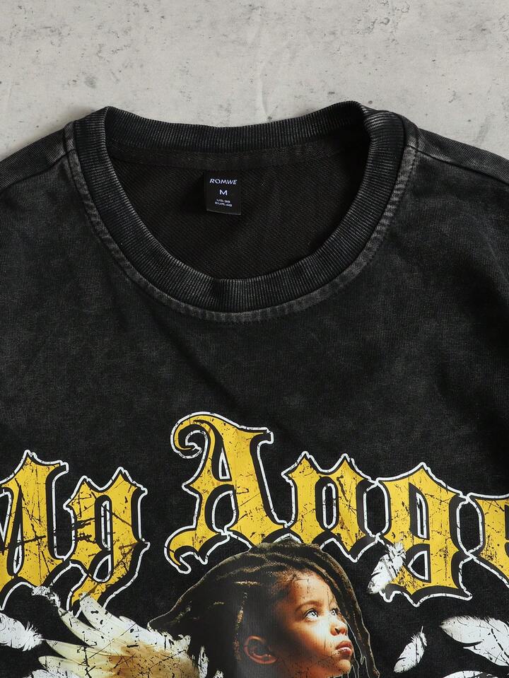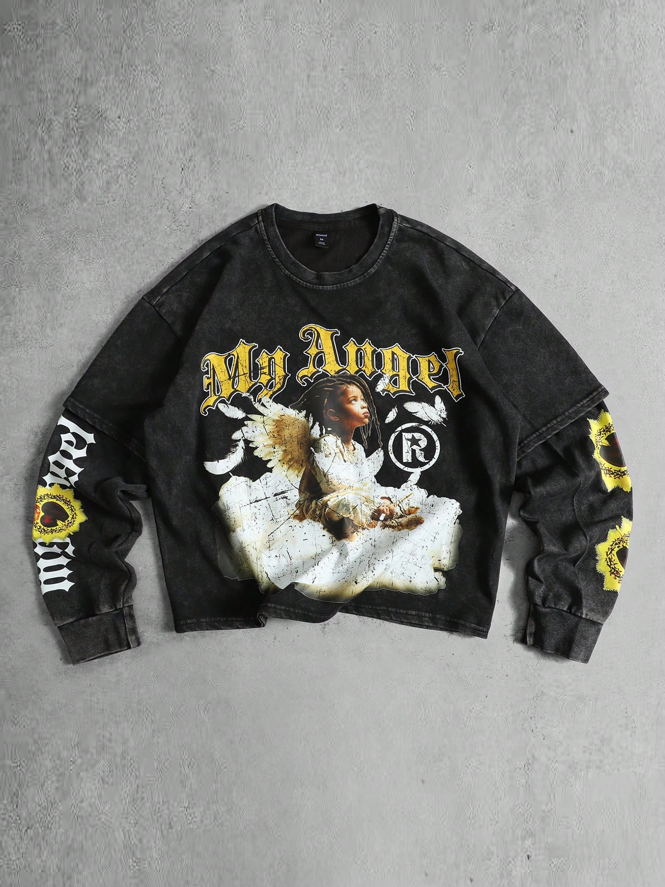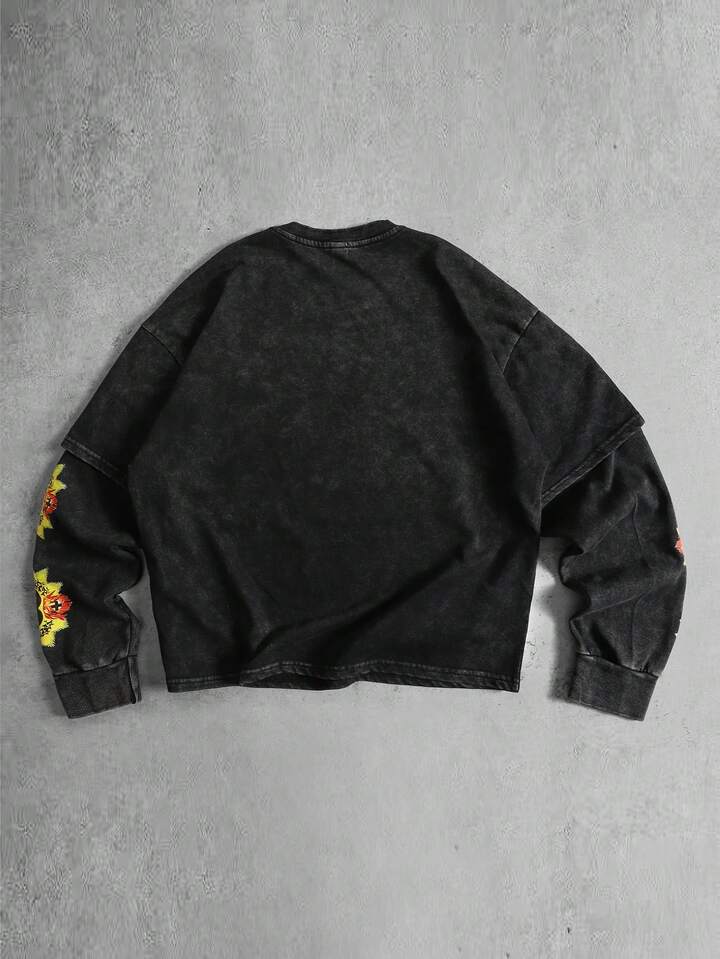 Maglietta a maniche lunghe da uomo 2 in 1 con stampa lavata