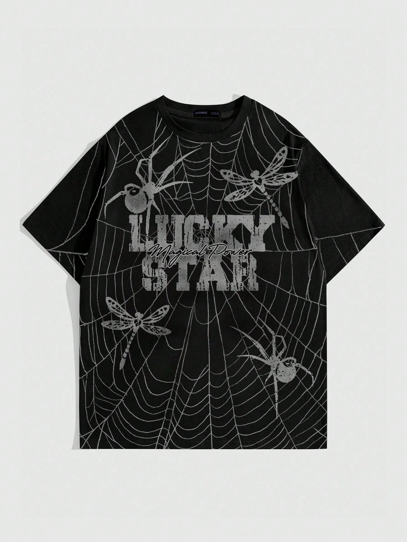 Maglietta casual da uomo a maniche corte con stampa all-over e collo rotondo, adatta per uso quotidiano