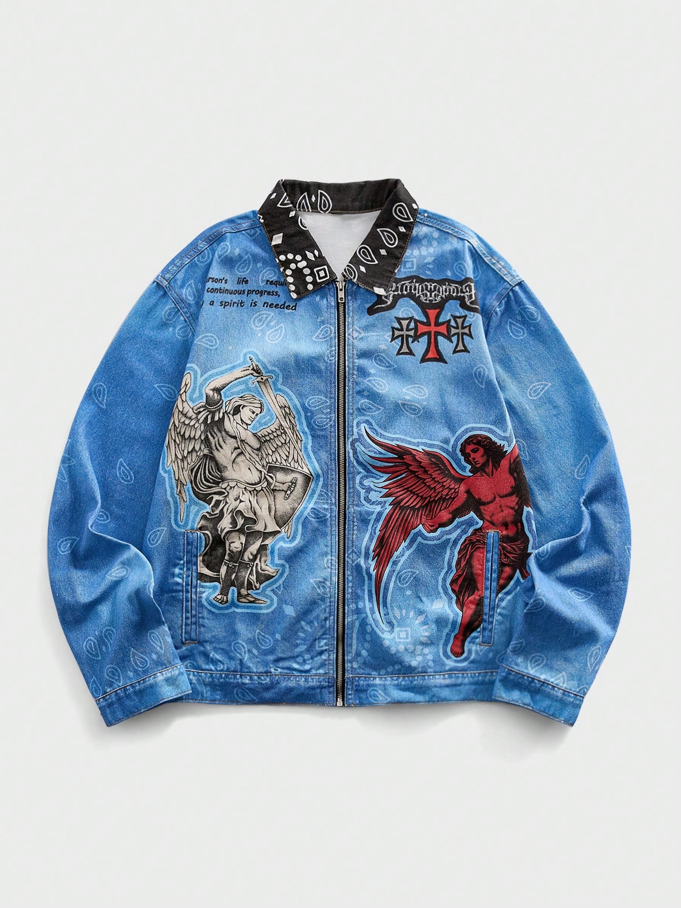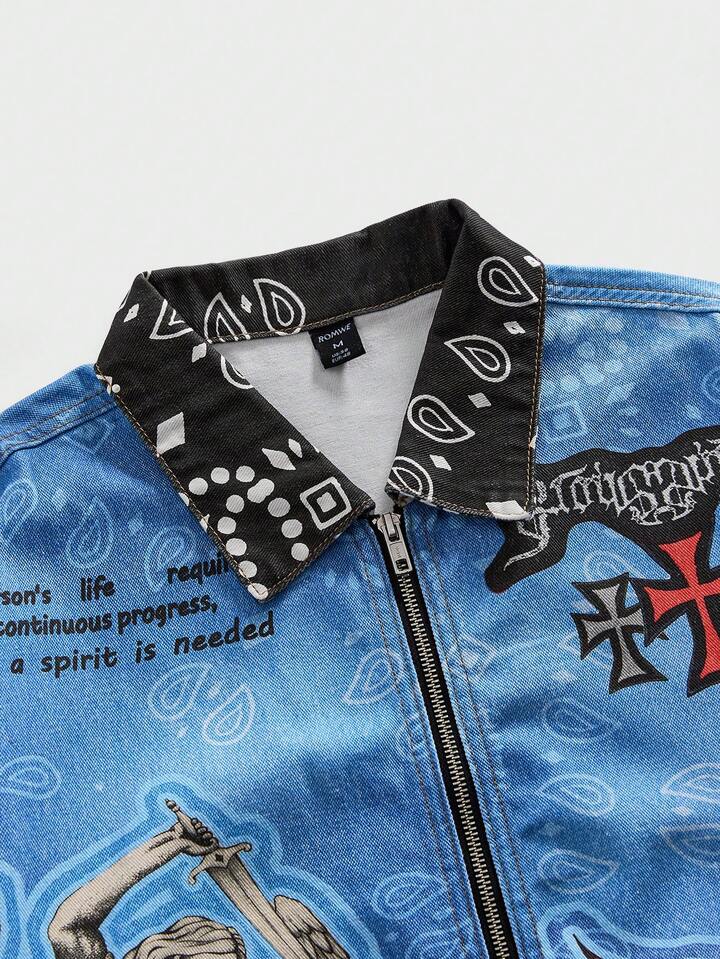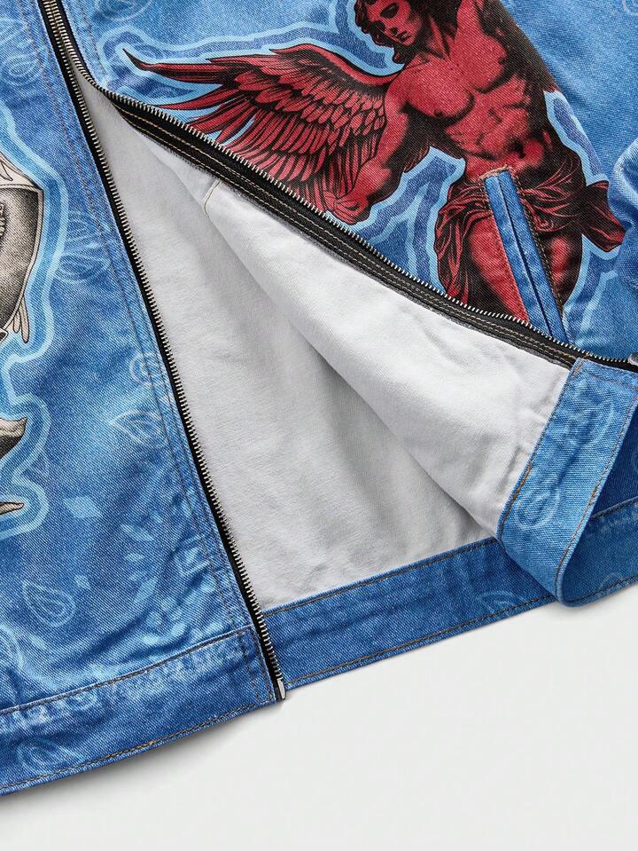 Giacca casual con chiusura lampo e stampa di lettere angeliche per uomo