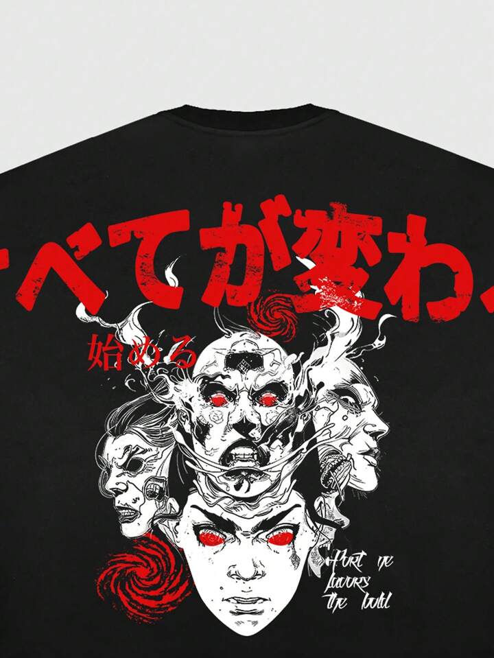 Anime Maglietta vintage oversize stampata da uomo per strada