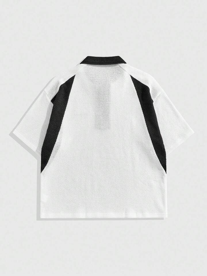 maglietta casual da uomo con maniche corte, in colore a contrasto e con patchwork, adatta per l'estate