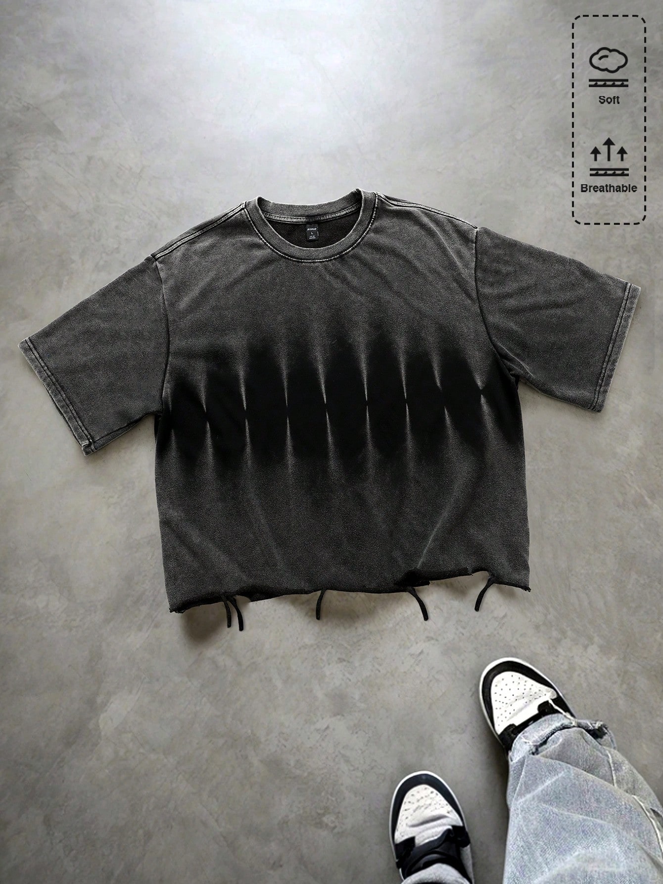 maglietta casual da uomo con collo rotondo, maniche corte, lavaggio consumato e vestibilità morbida