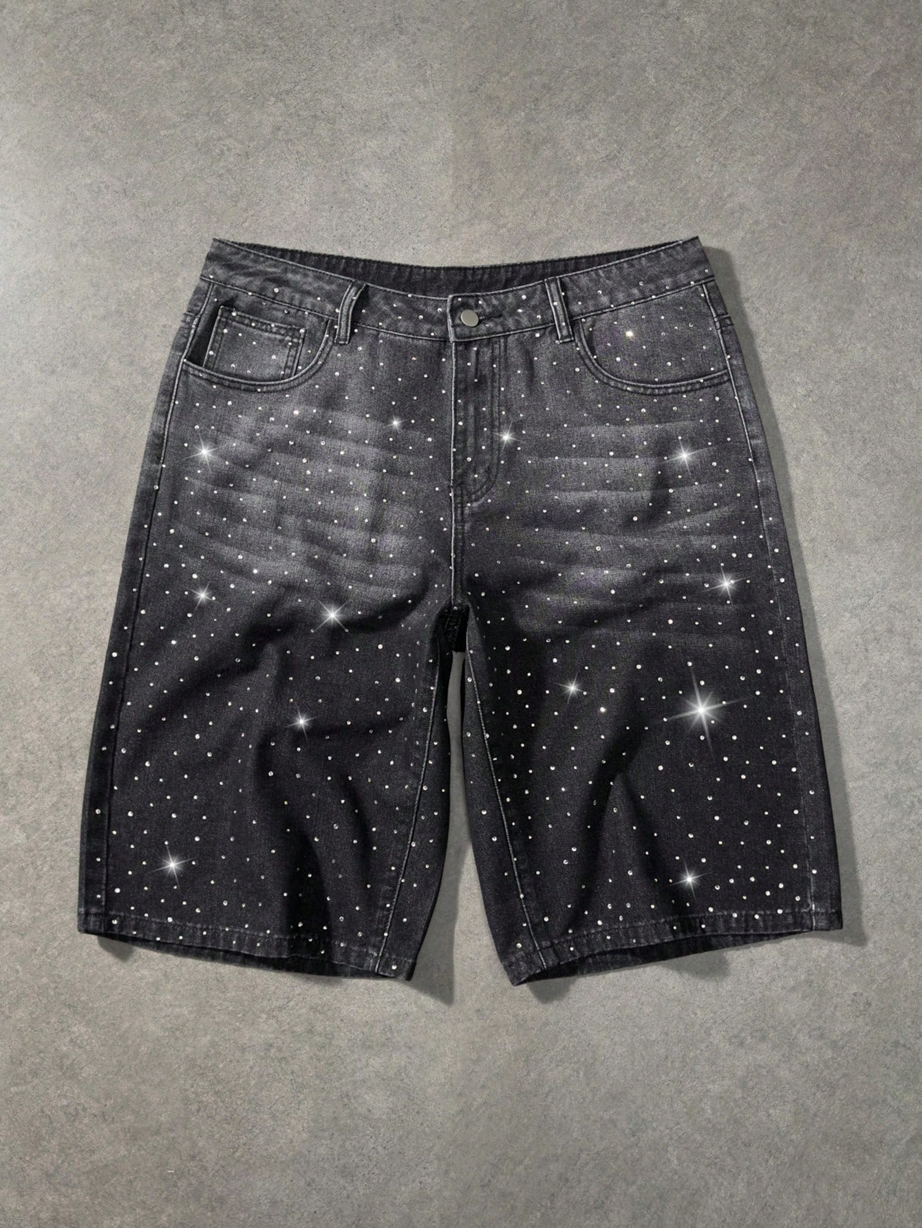 Pantaloncini di jeans casual da uomo con strass, stile di strada, lavati, estivi