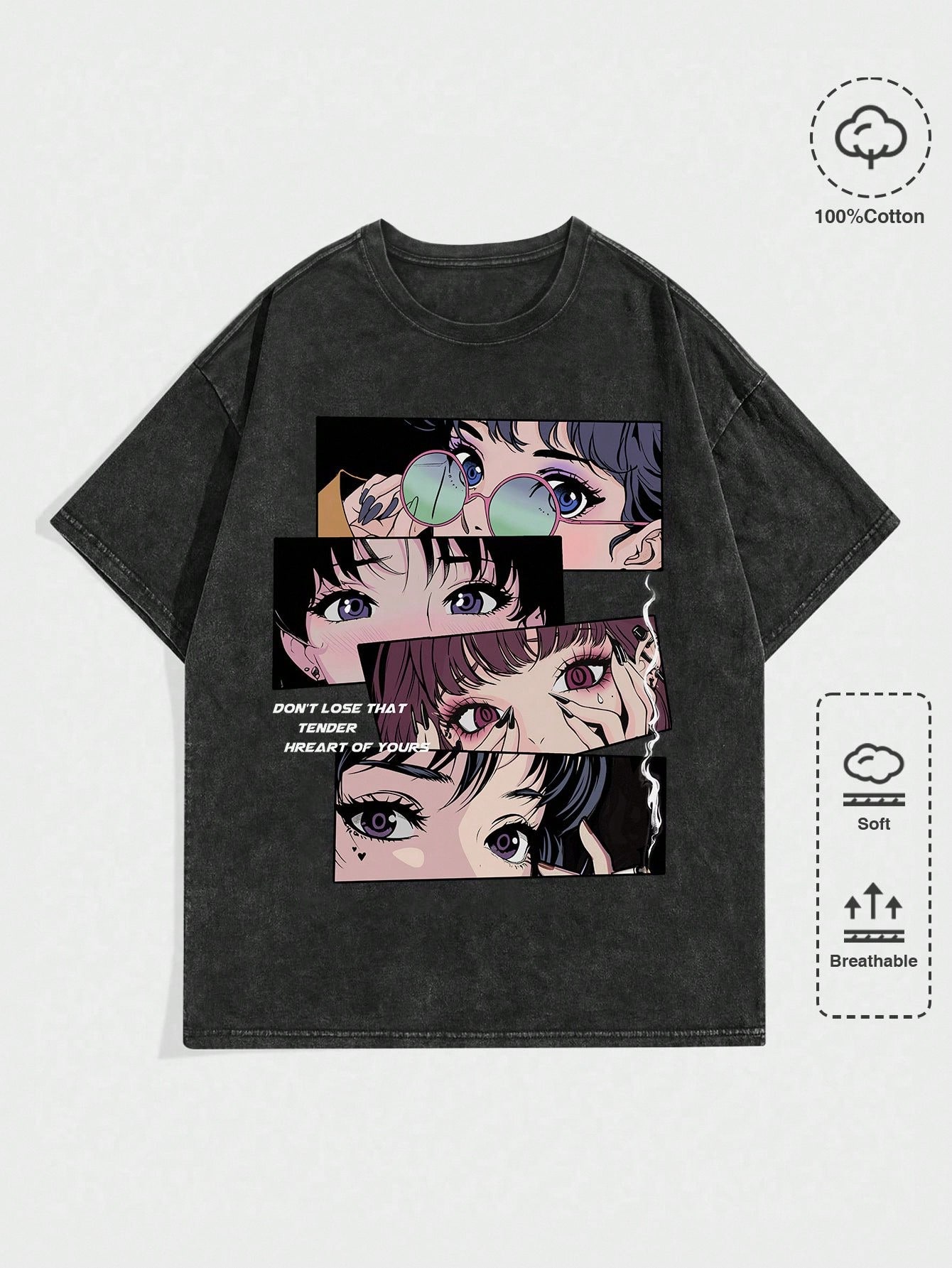 Anime maglietta casual da uomo con grafica a fiocco di neve e slogan, estiva