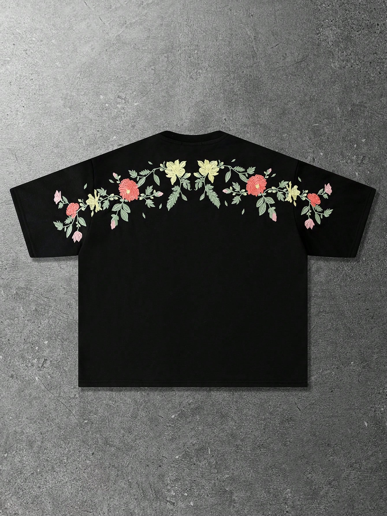 Maglietta casual da uomo con motivo floreale ricamato, ampia