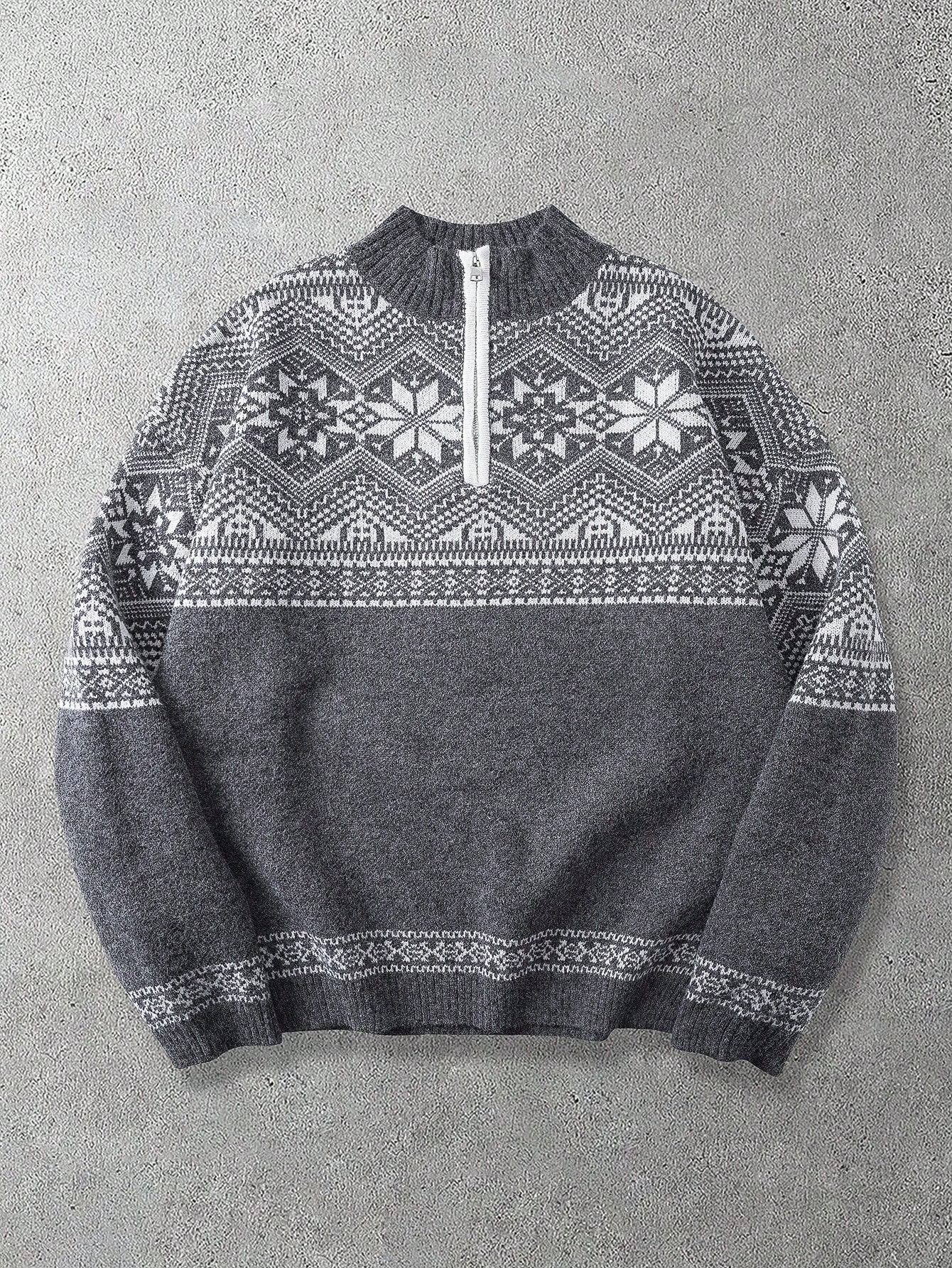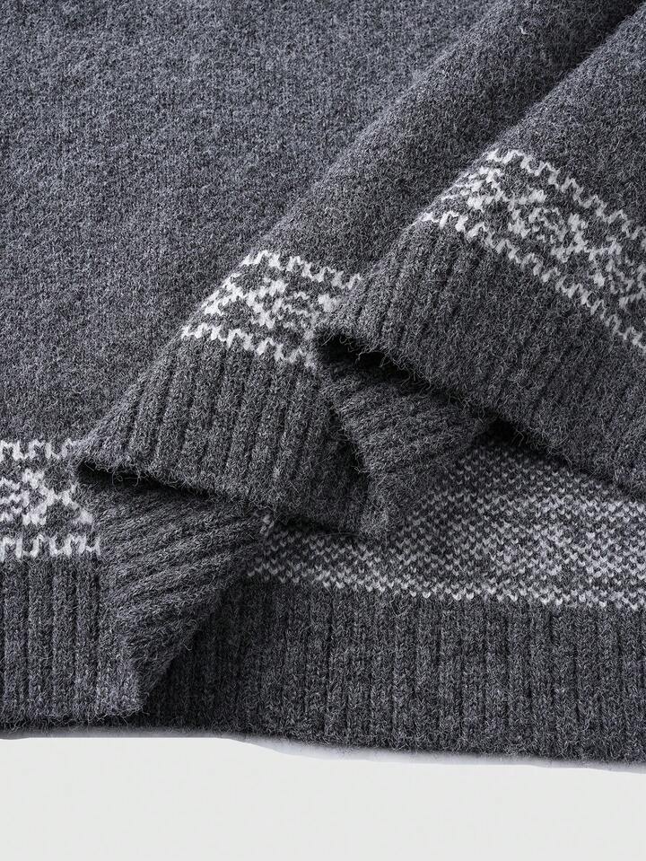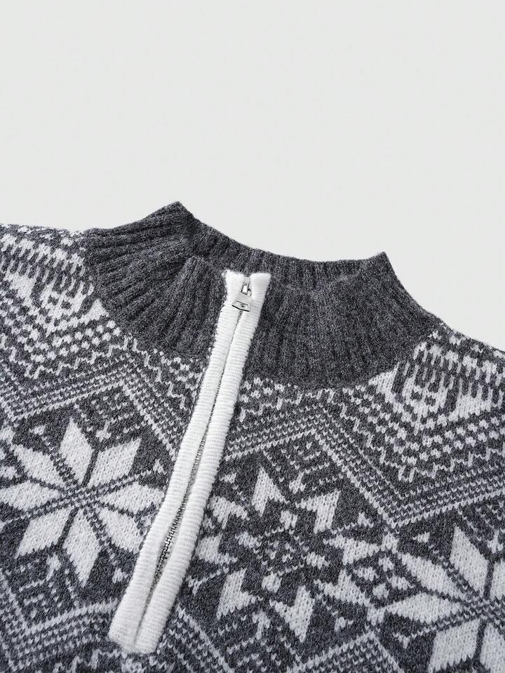 Maglione casual da uomo con chiusura lampo a 1/4 e motivo geometrico, autunno/inverno