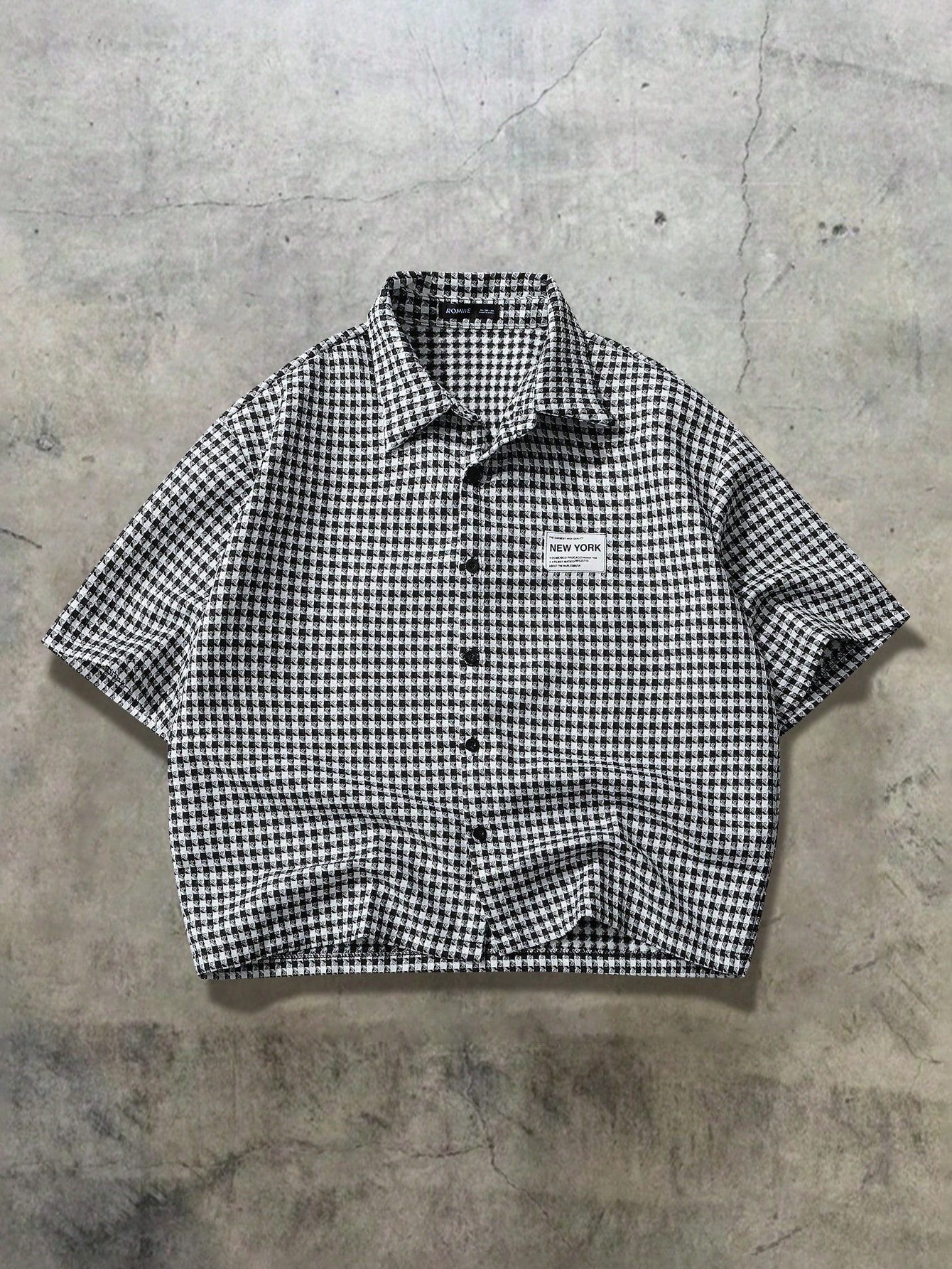 Camicia casual da uomo a maniche corte con stampa pied-de-poule, estiva