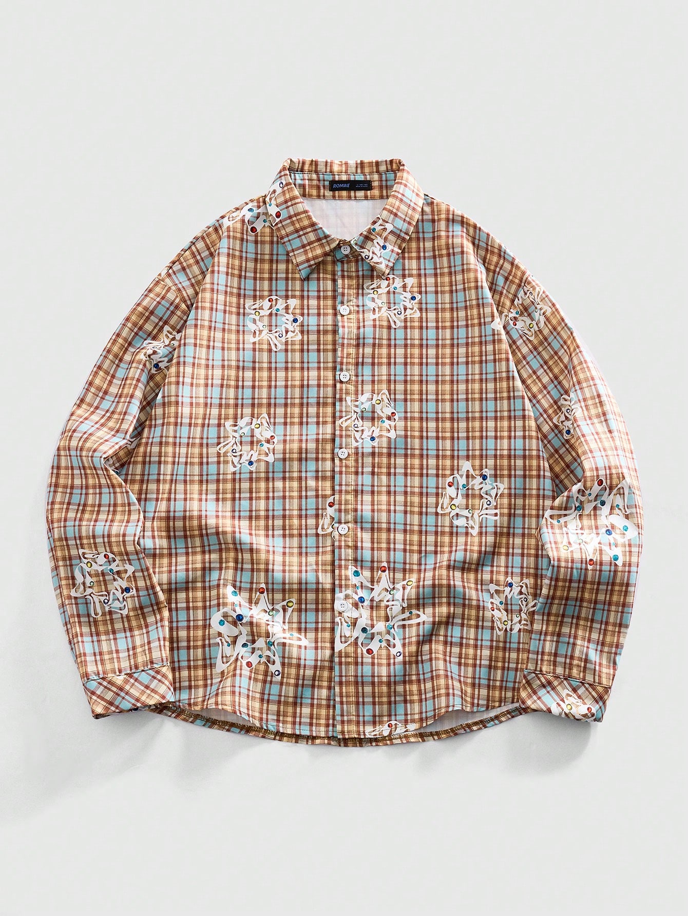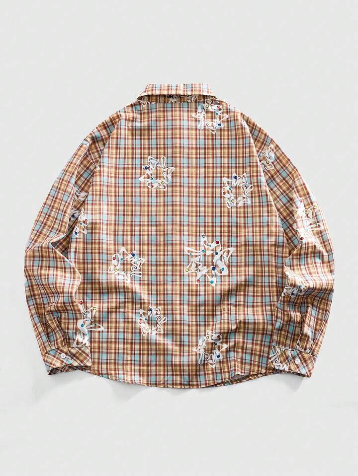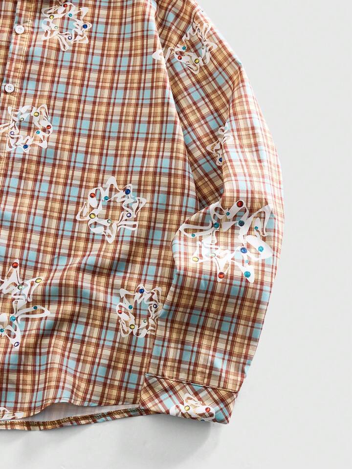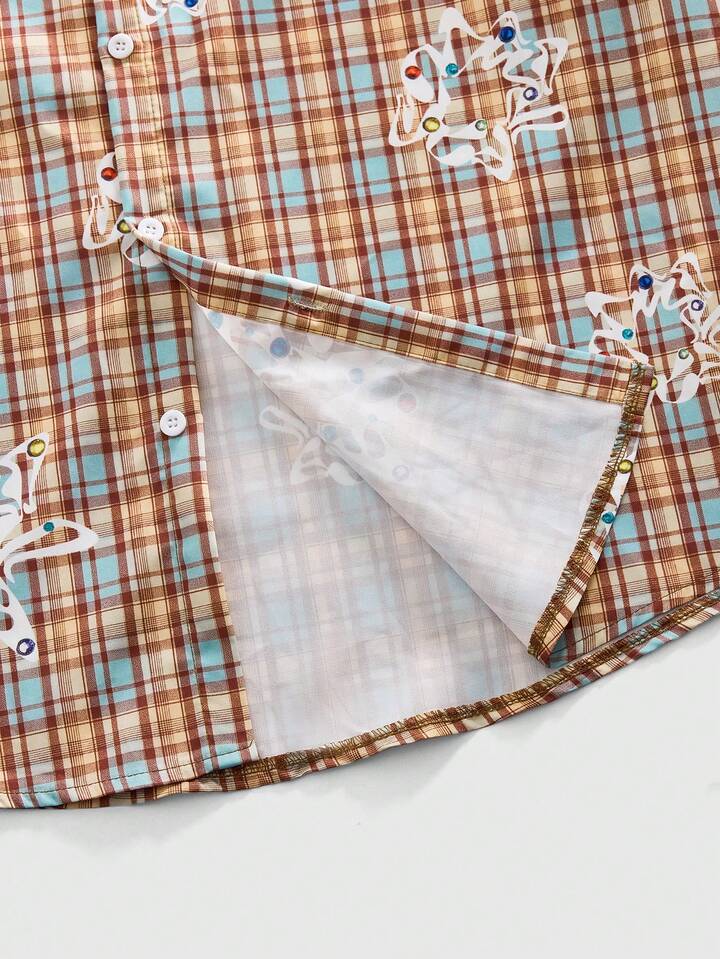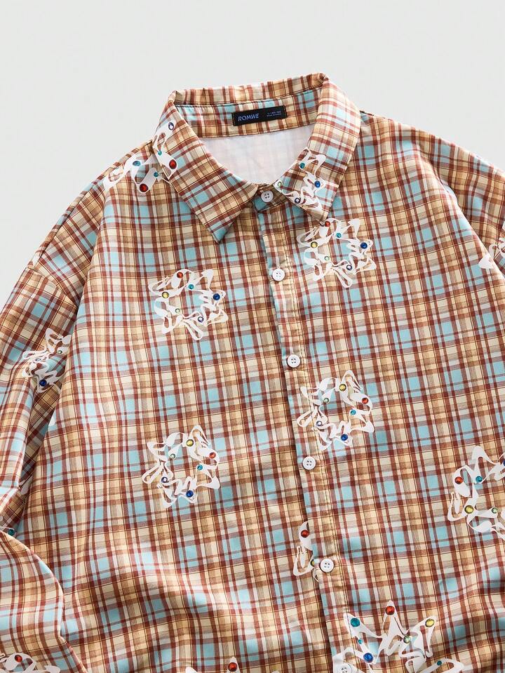 Camicia casual da uomo a maniche lunghe con stampa a quadri, stile college