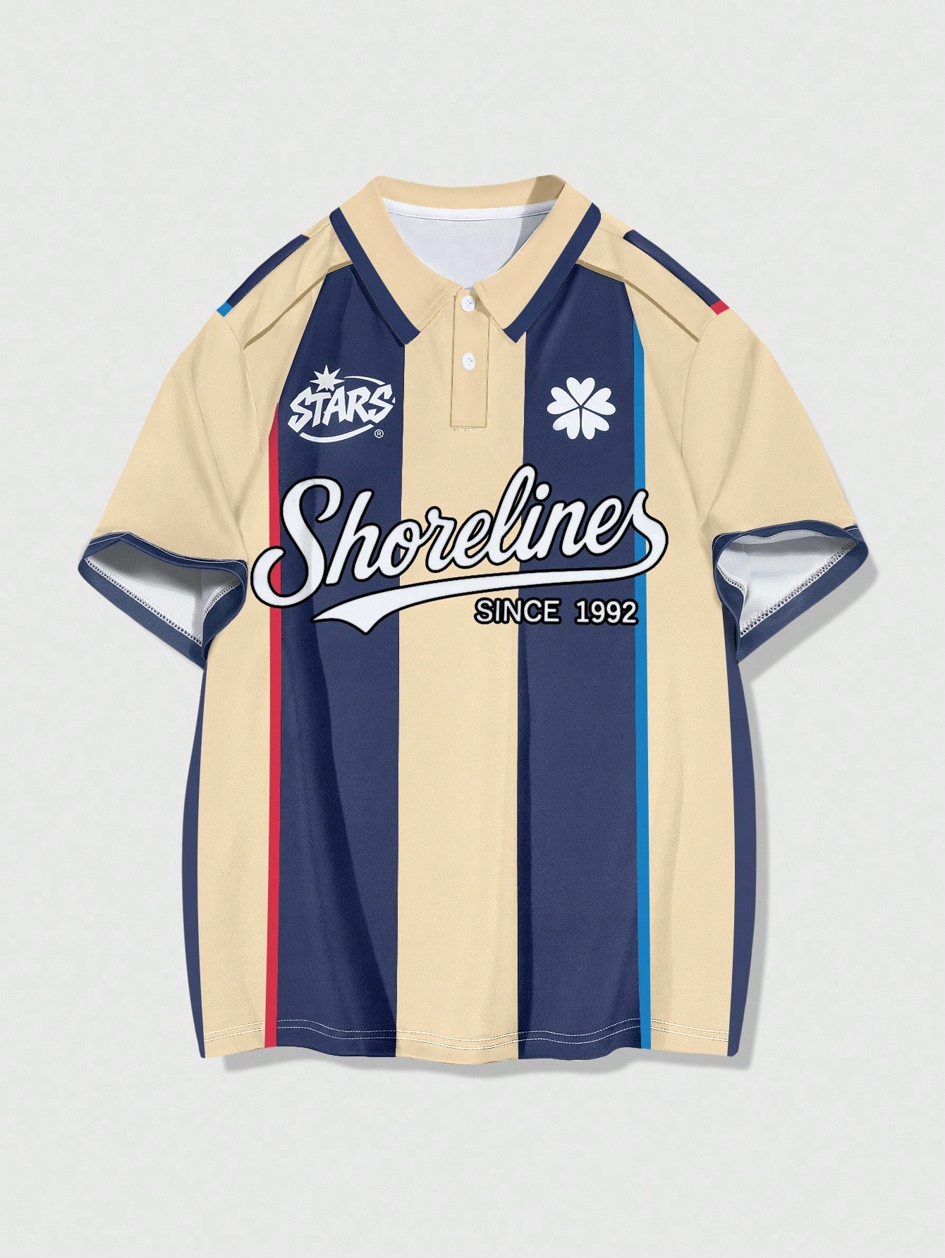 Prep Camicia polo casual con bottoni da uomo, stile college