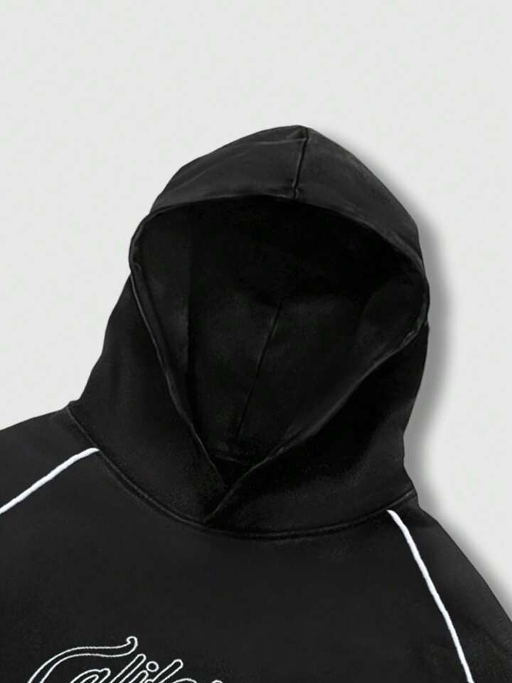 Felpa con cappuccio casual e calda da uomo con grafica a lettera, autunnale