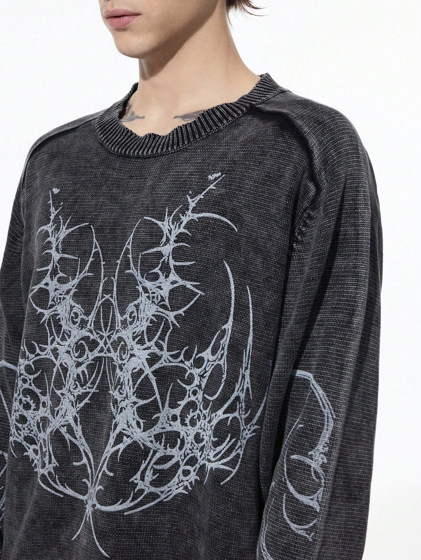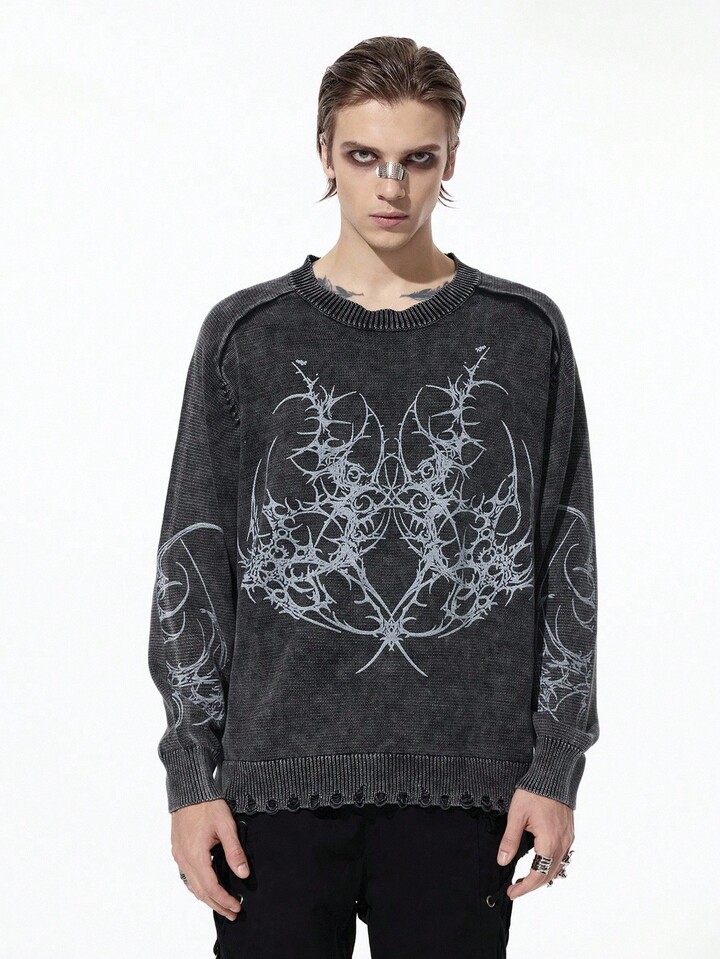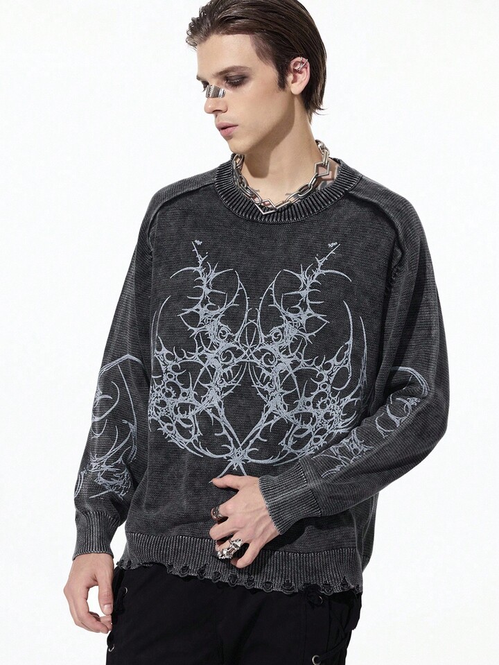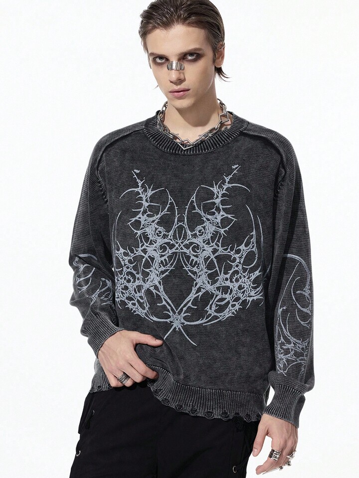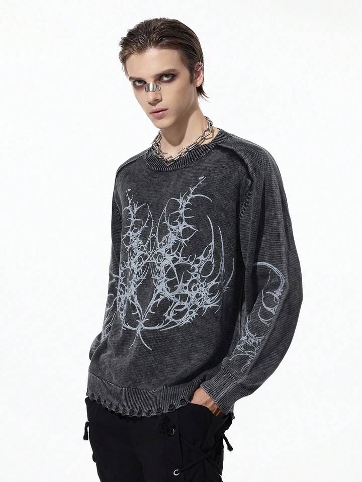 Goth Maglione girocollo gotico da uomo con grafica scura, autunno inverno