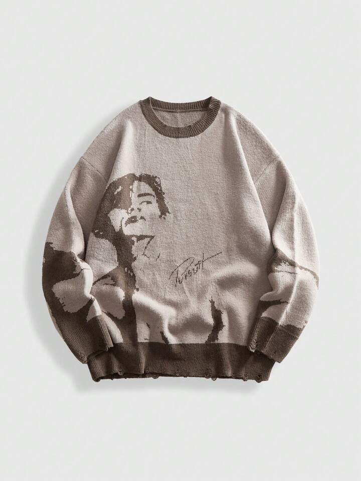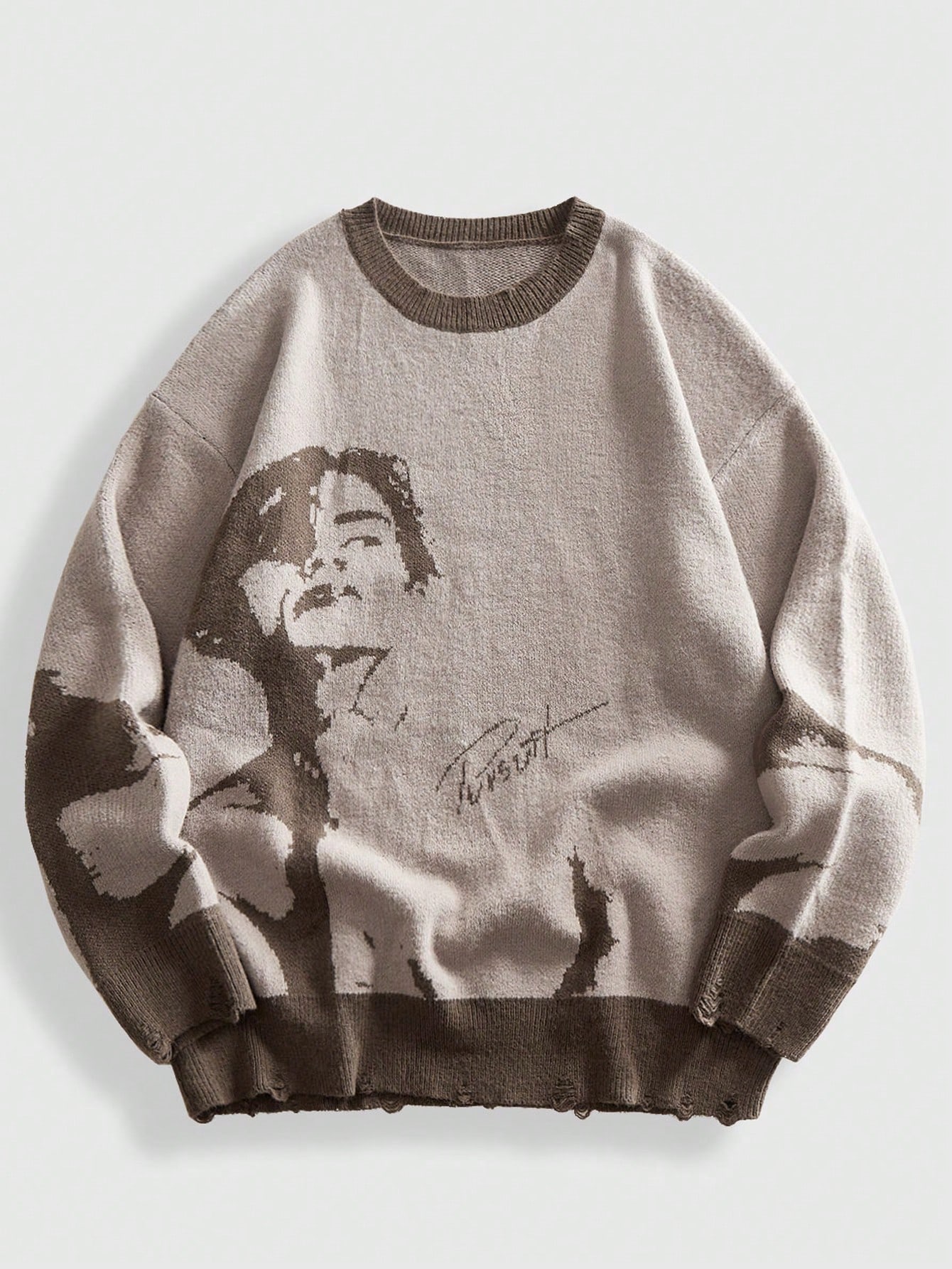 Maglione girocollo da uomo in maglia jacquard, moda di strada