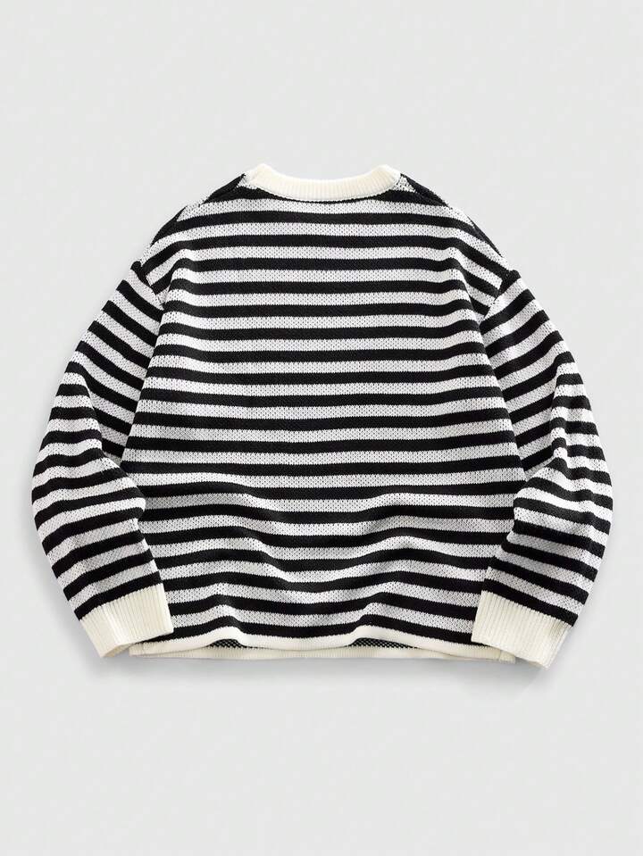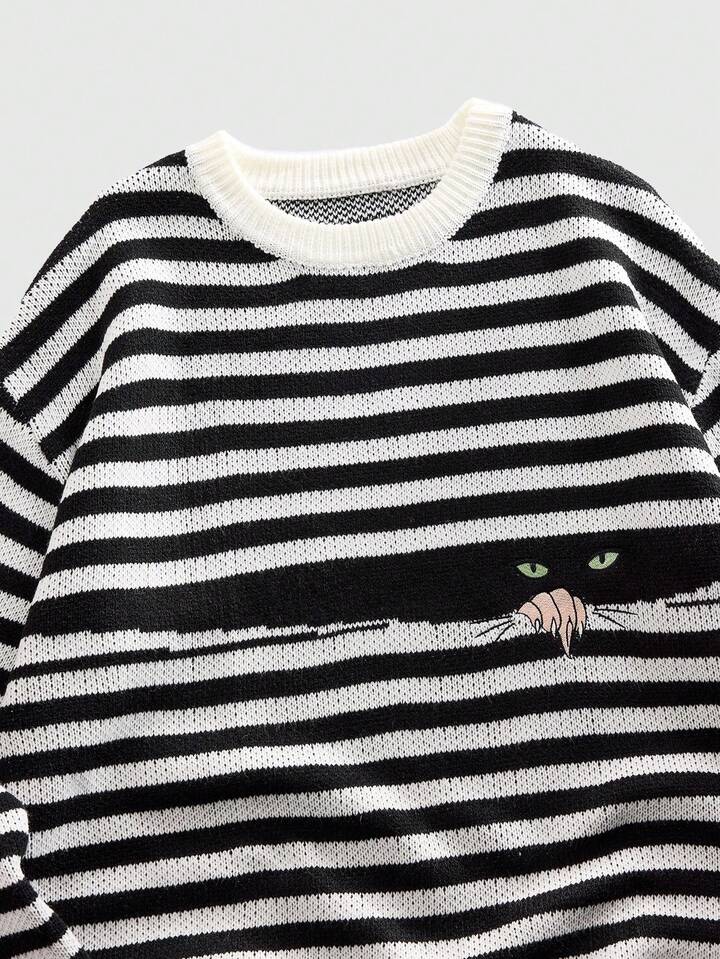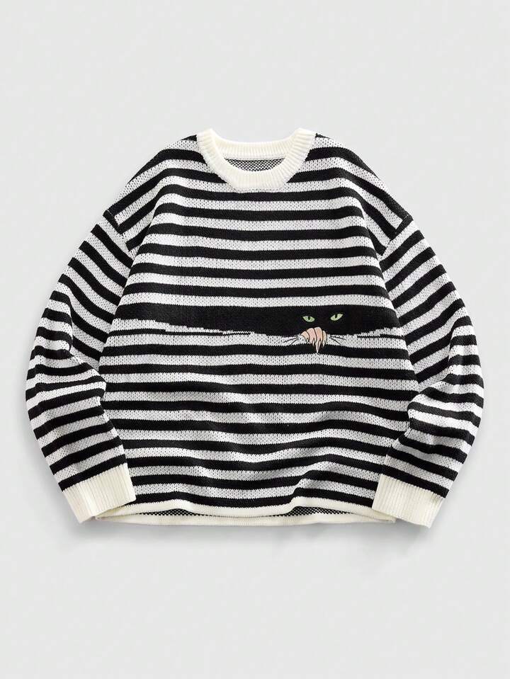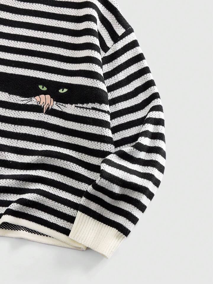 Maglione a girocollo da uomo a maglia con motivo a righe e gatti