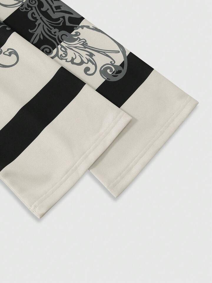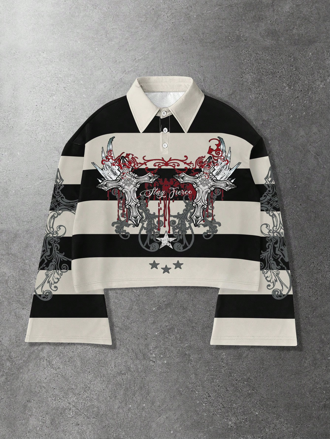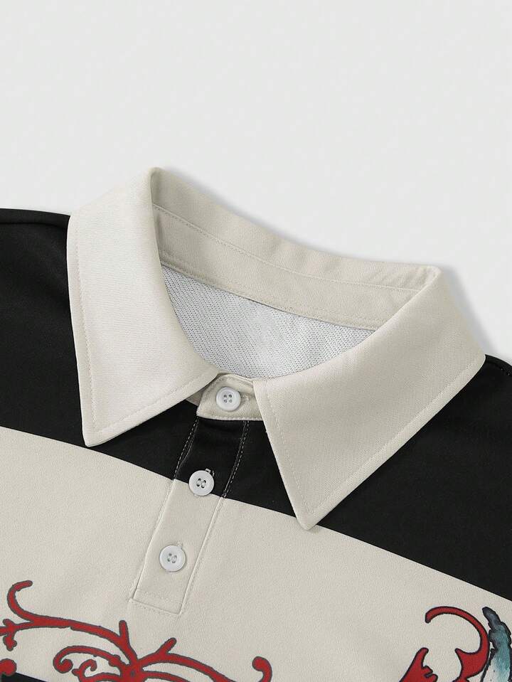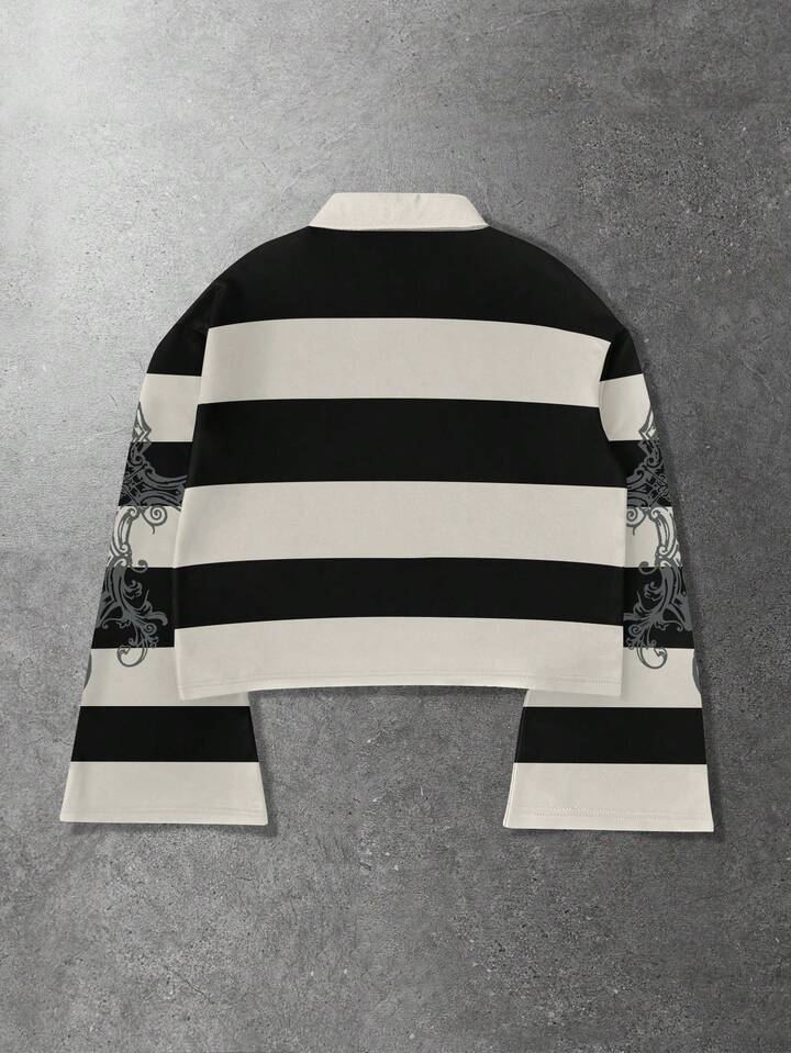 Camicia polo casual a maniche lunghe da uomo con stampa a righe e a croce