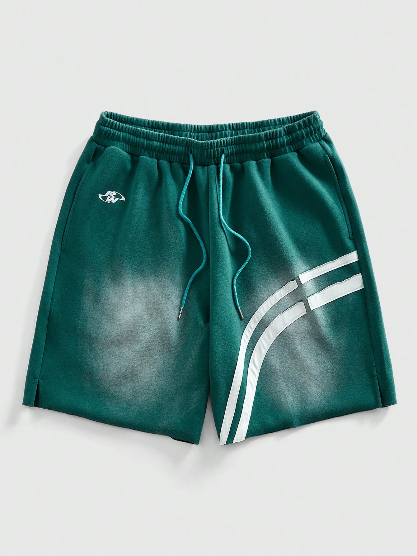 Pantaloncini casual da uomo con righe verdi e bianche sfumate e effetto consumato