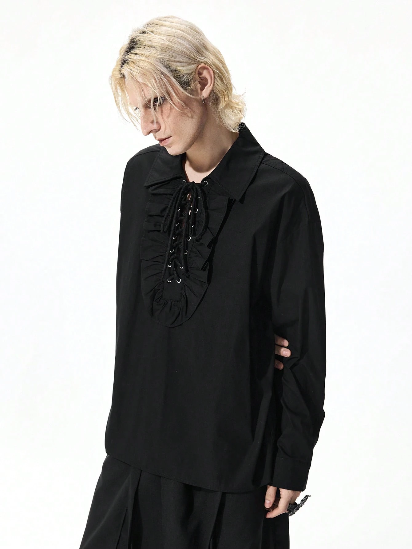 Goth Camicia da uomo alla moda con colletto arricciato in stile gotico