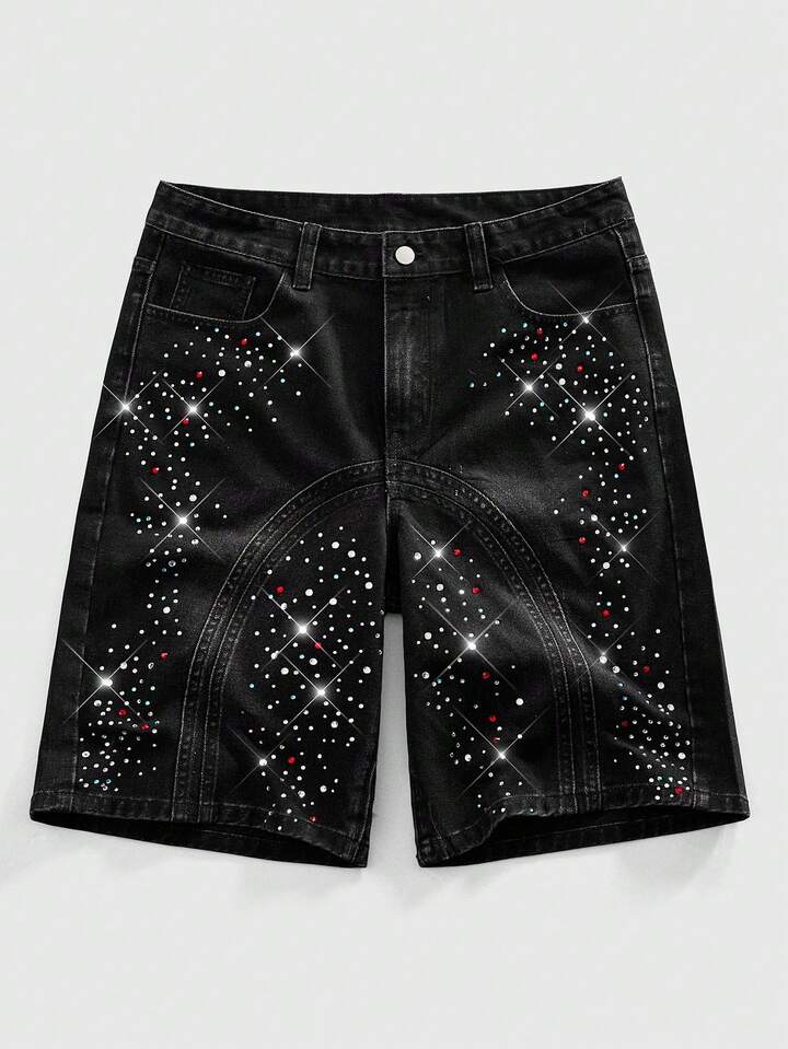 Pantaloncini di jeans neri alla moda personalizzati con strass per uomo