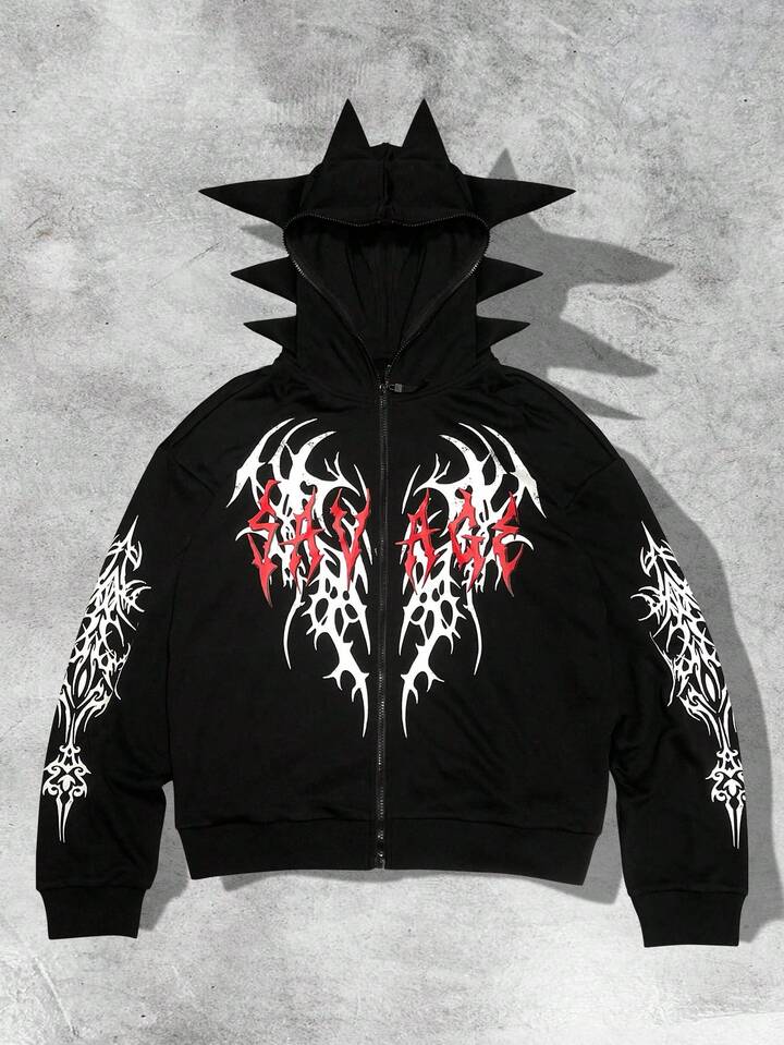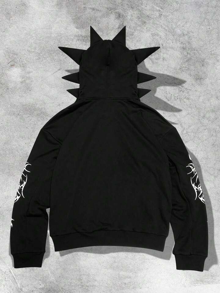 Felpa da uomo con stampa di corna in stile gotico