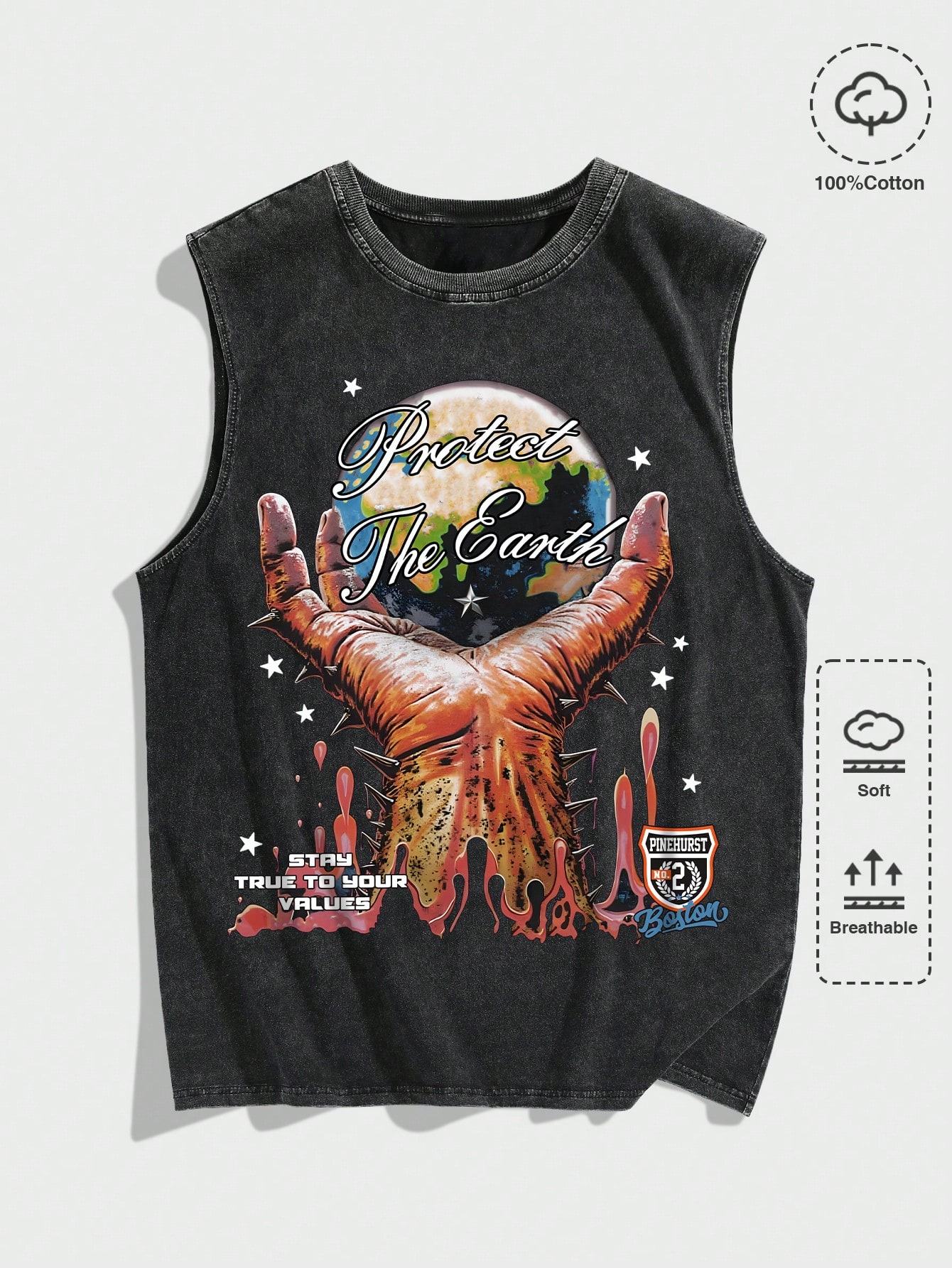 Goth Canotta uomo stile gotico con stampa a croce, effetto lavato e consumato, adatta per Ognissanti