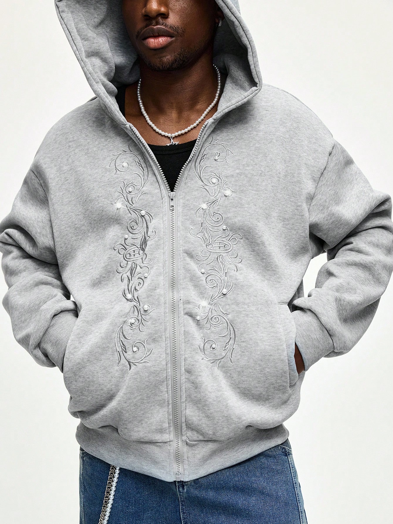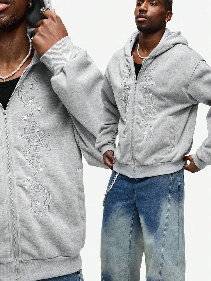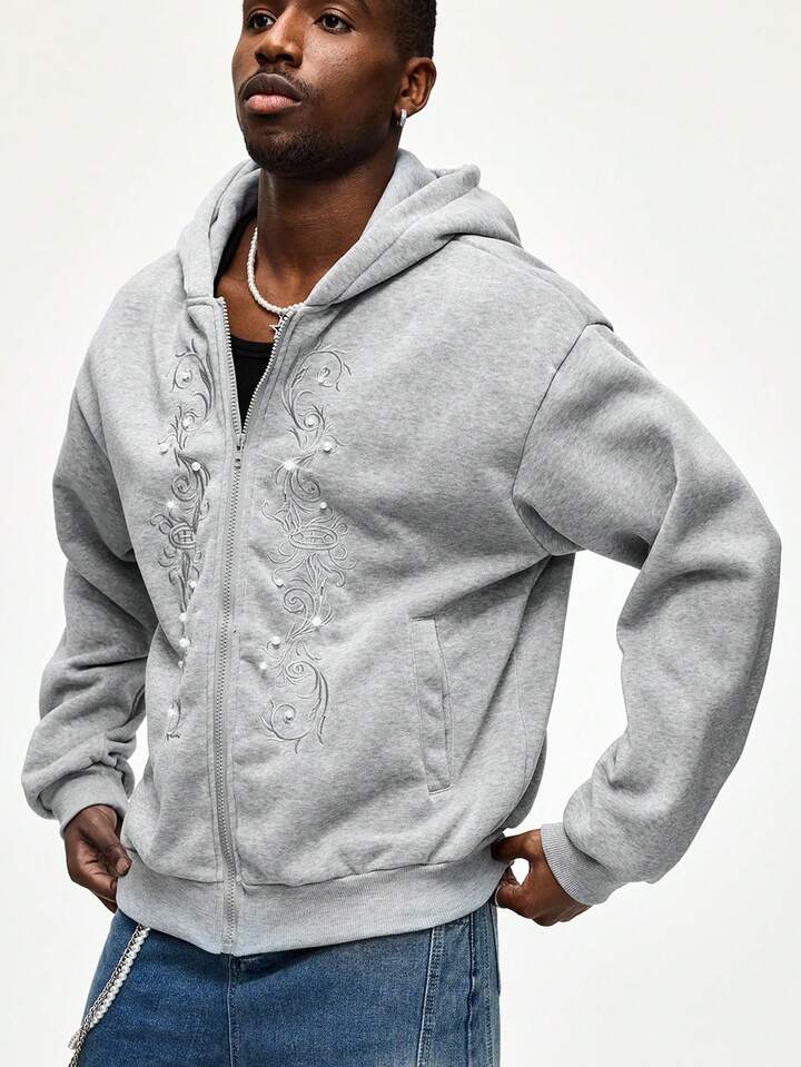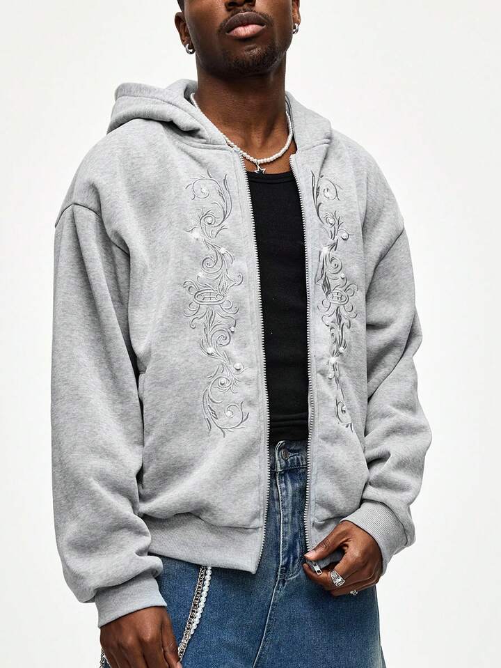 Felpa casual da uomo con ricamo gotico, stile college, autunno/inverno