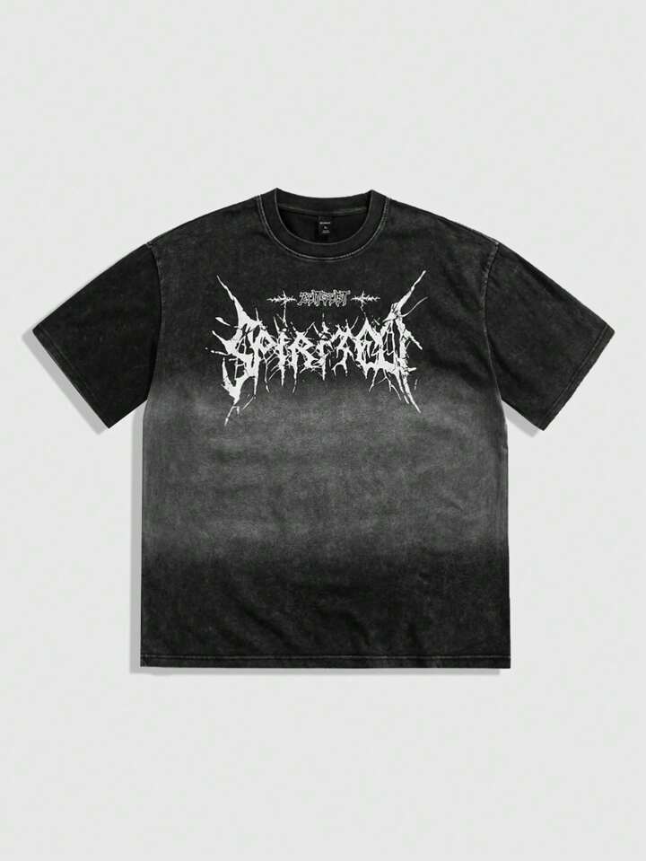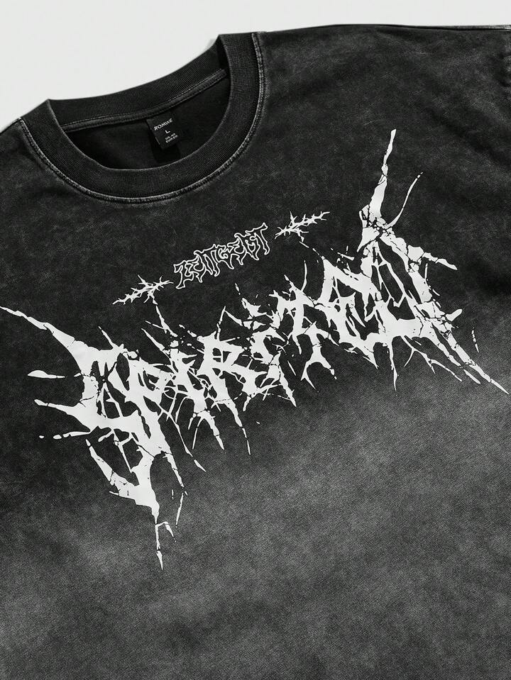 Goth T-shirt casual da uomo con stampa di lettere gotiche, scollo rotondo, maniche corte, adatta per Ognissanti